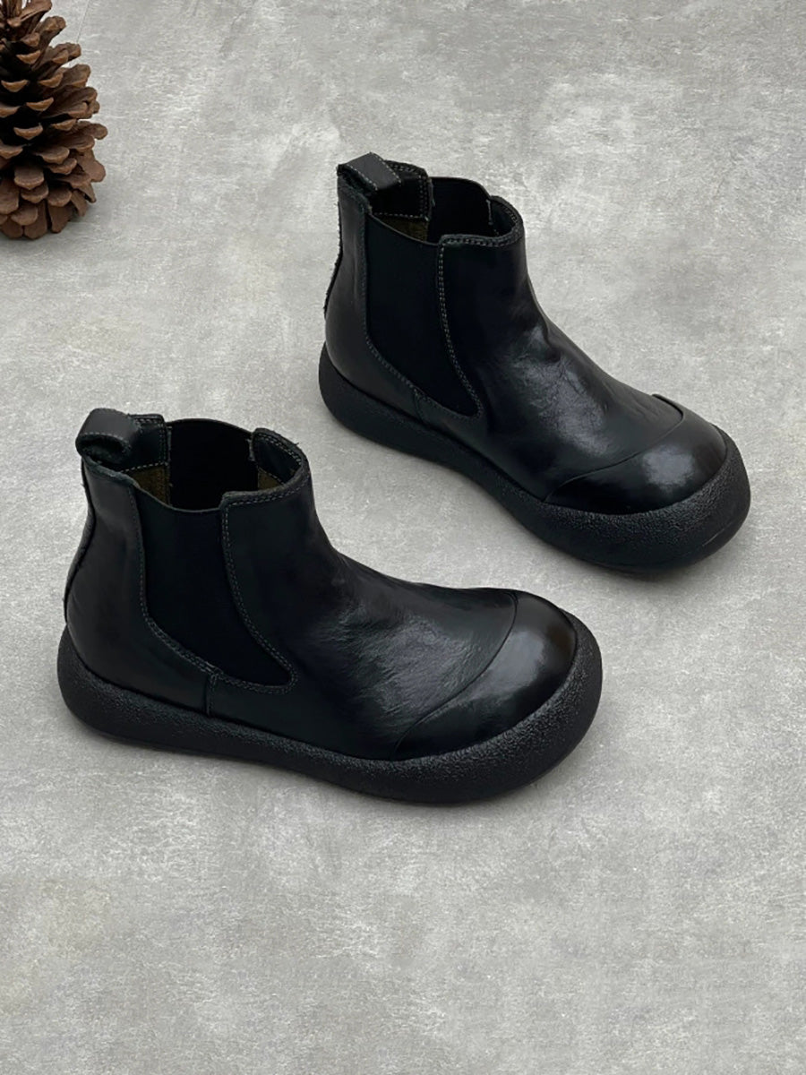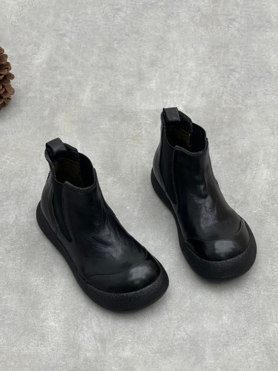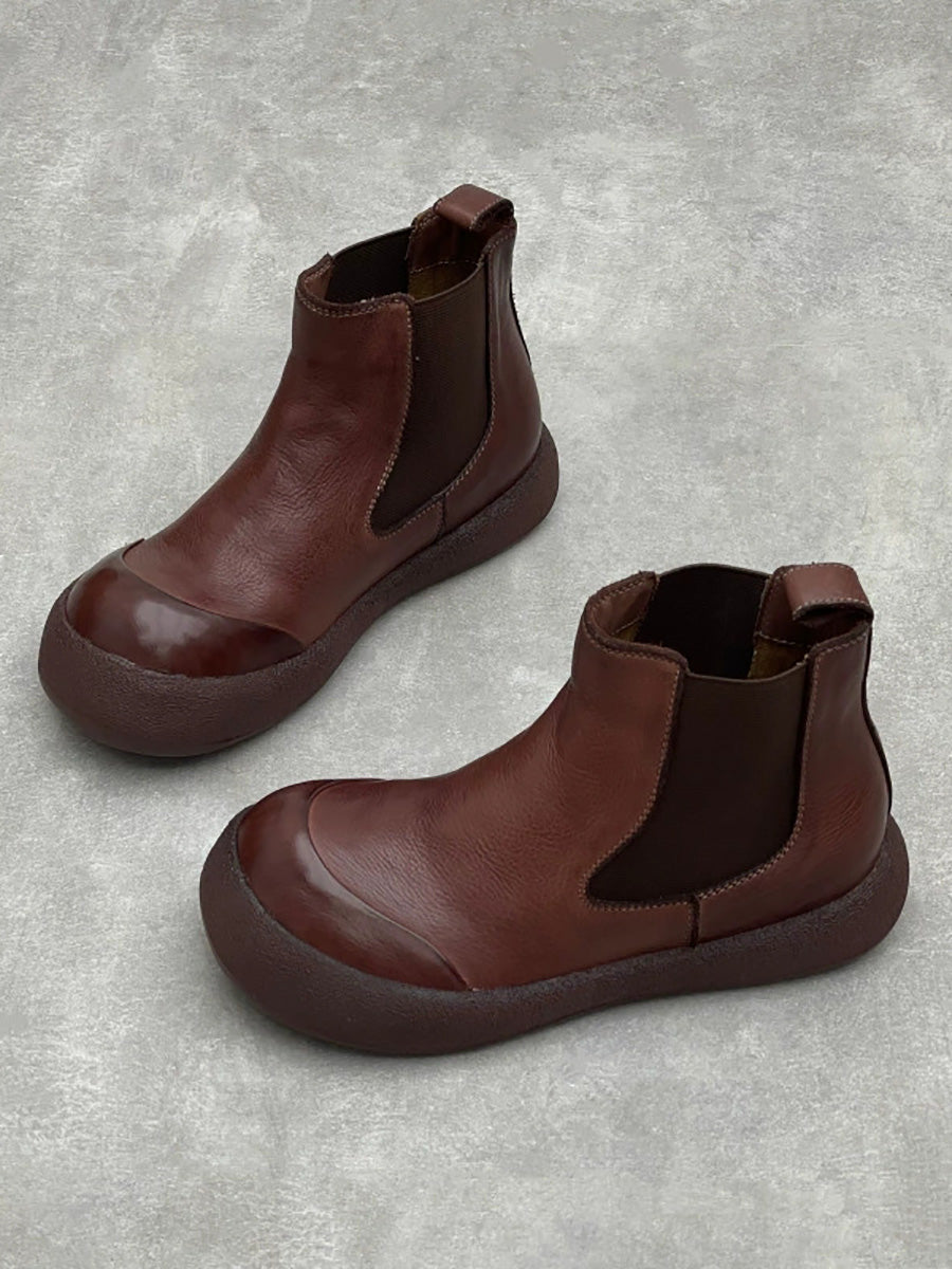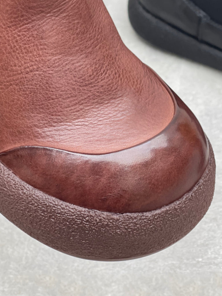Damen Winter Echtleder Gespleißte Flache Stiefeletten
