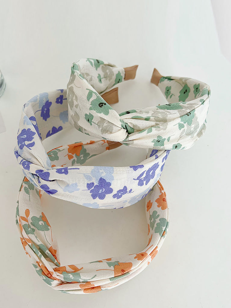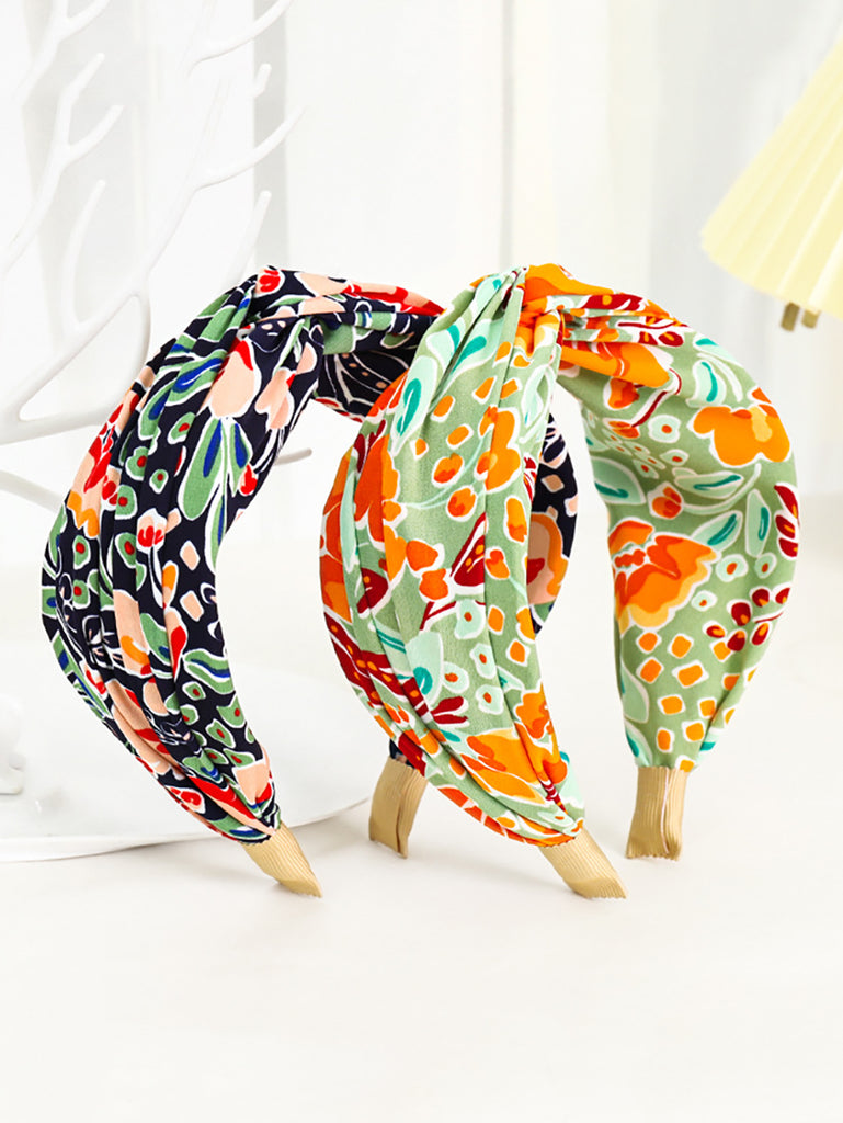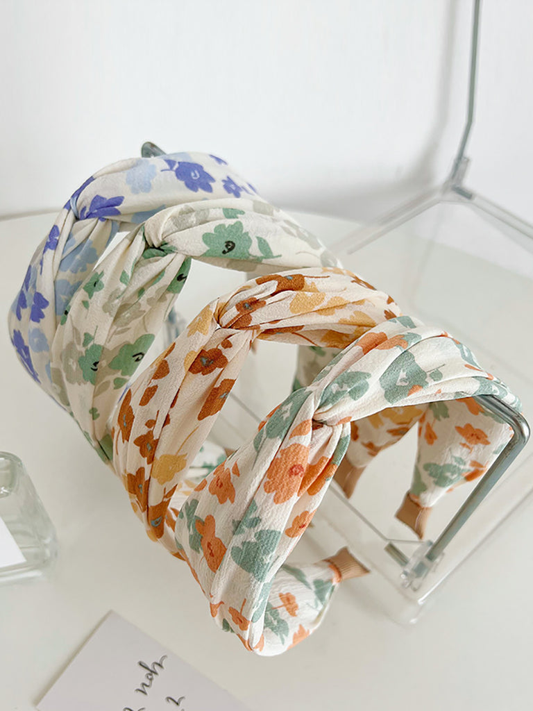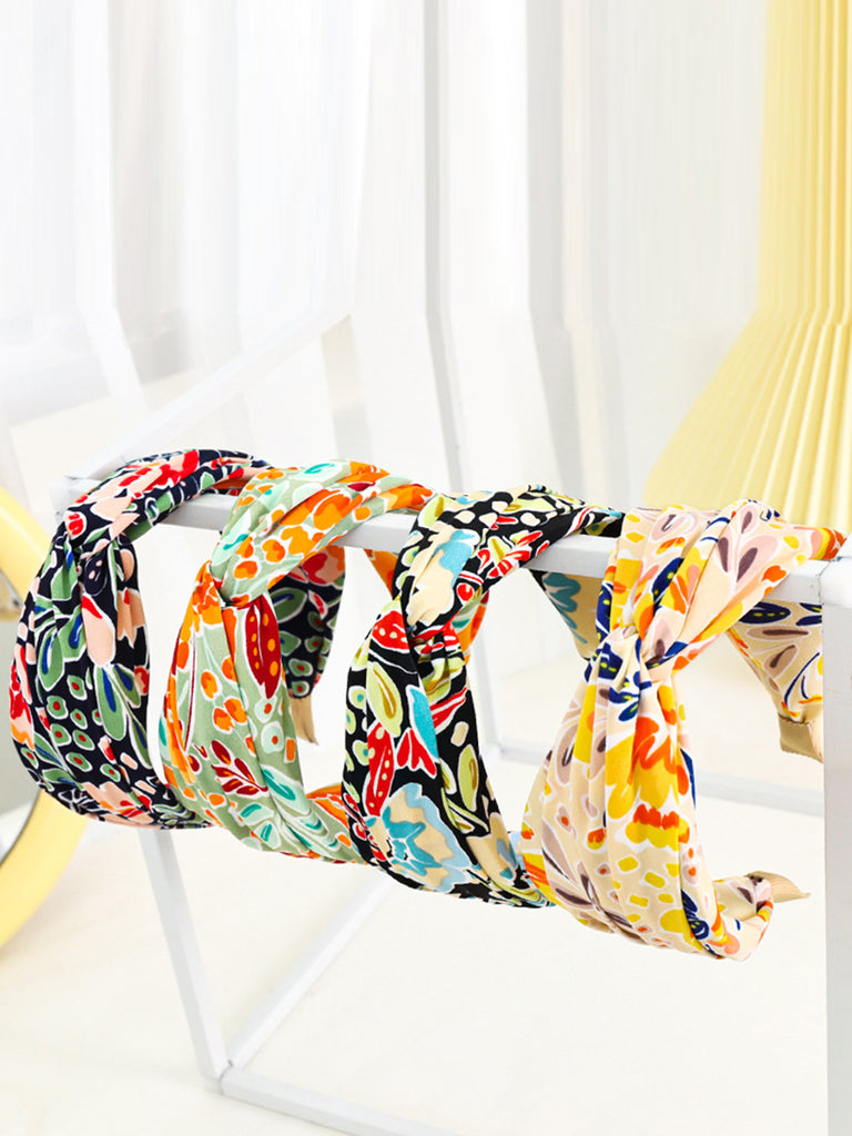 4-teiliges Set für Damen mit künstlerischem Blumendruck und Knoten-Haarband