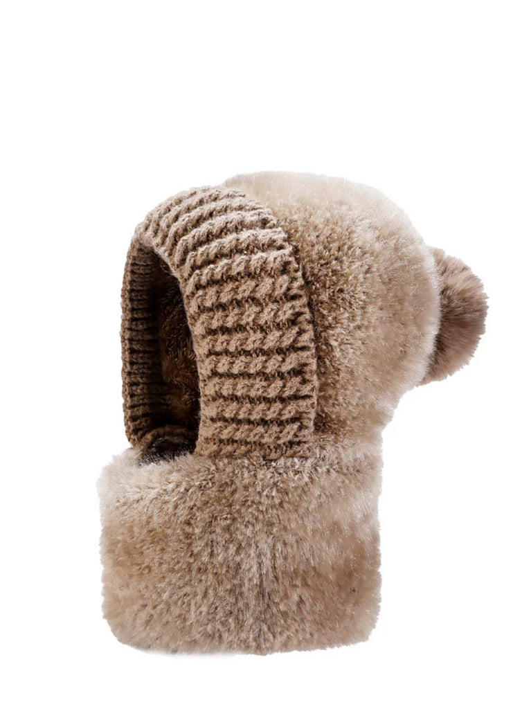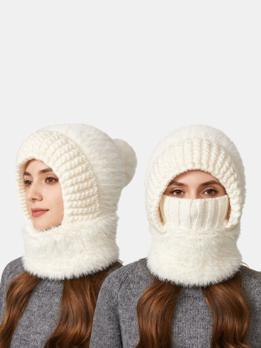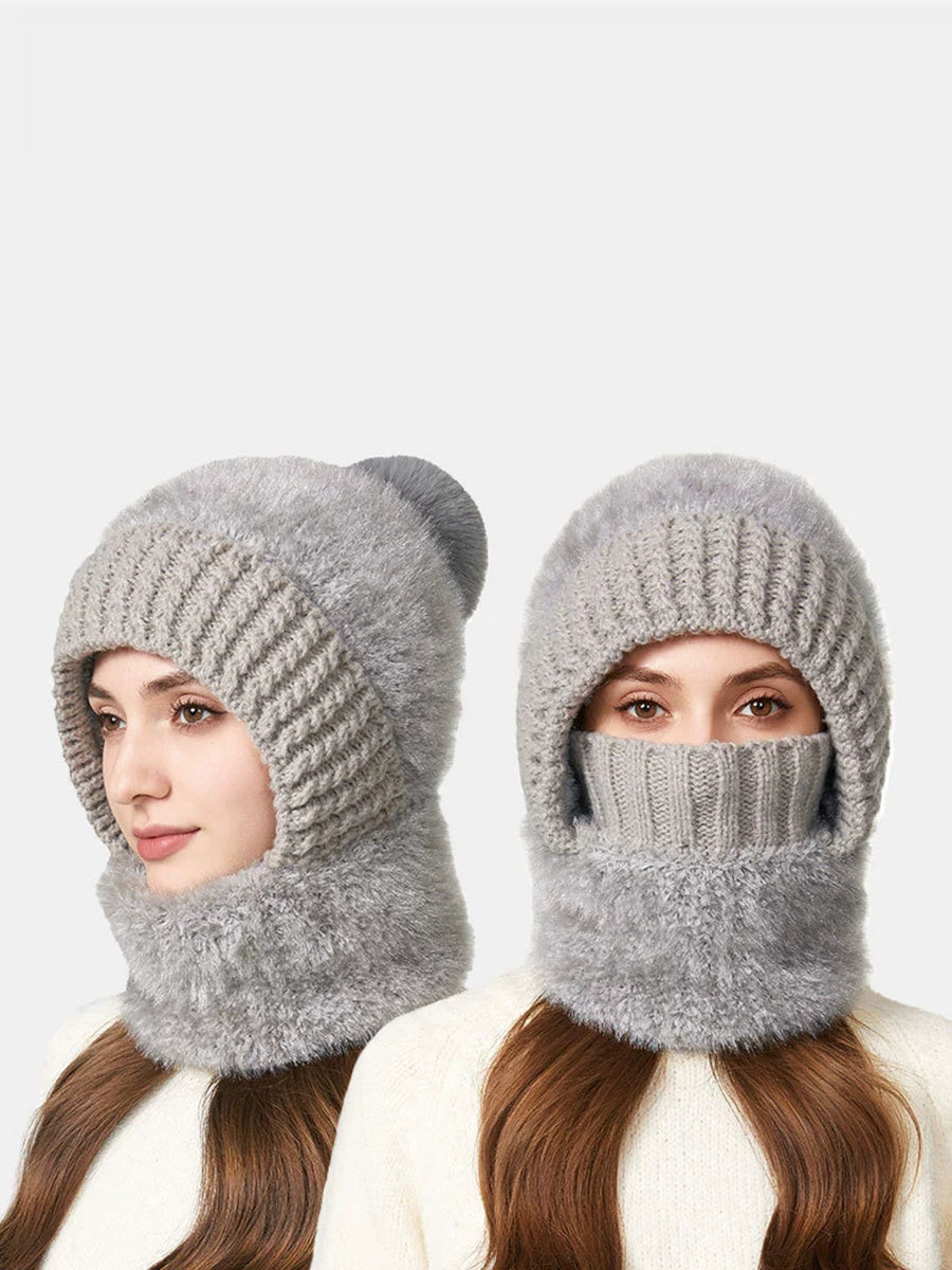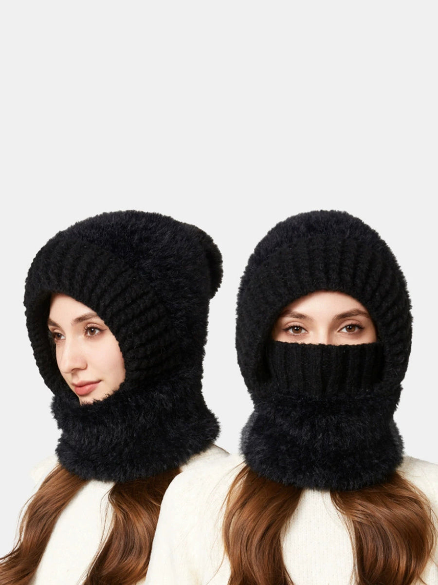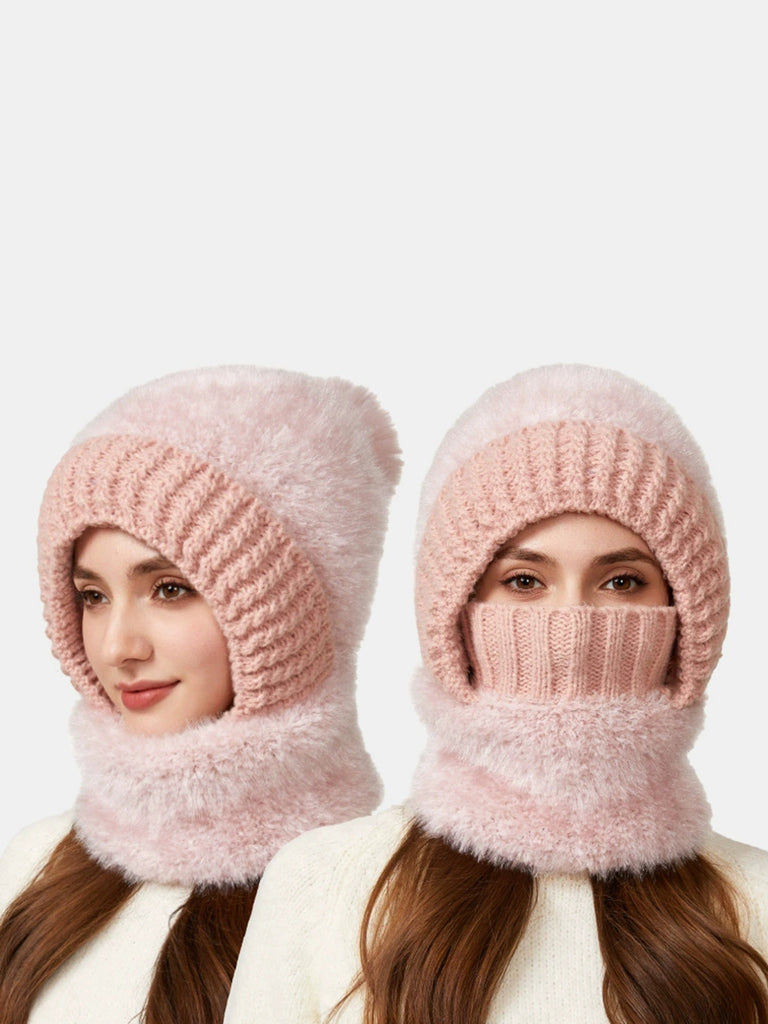 Damen-Freizeit-Schal und Mütze aus Plüsch in Unifarben