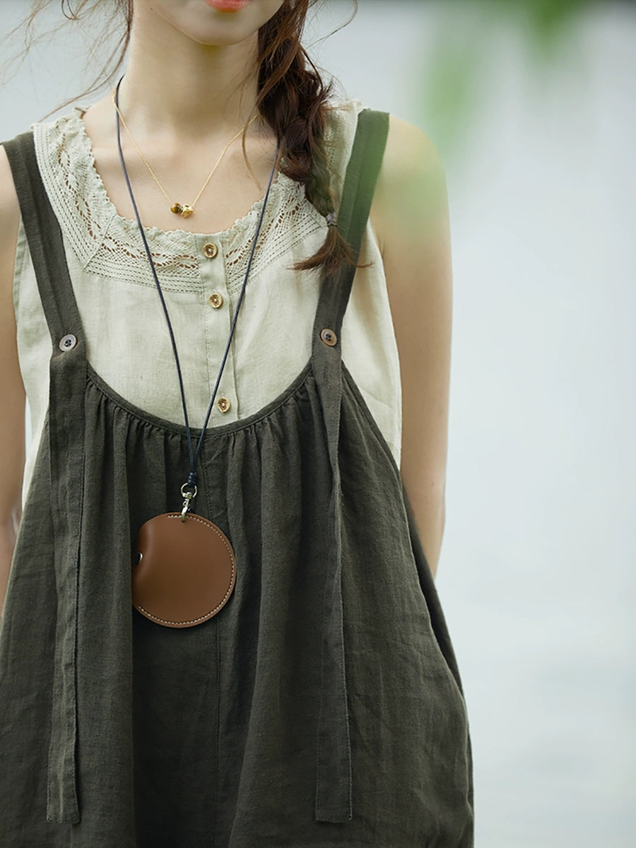 Frauen Sommer Retro Reine Farbe 100% Leinen Overalls
