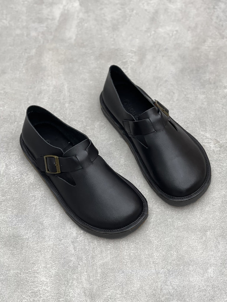 Damen Vintage Echtleder Gespleißte Schuhe mit niedrigem Absatz