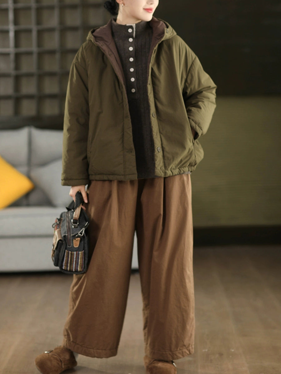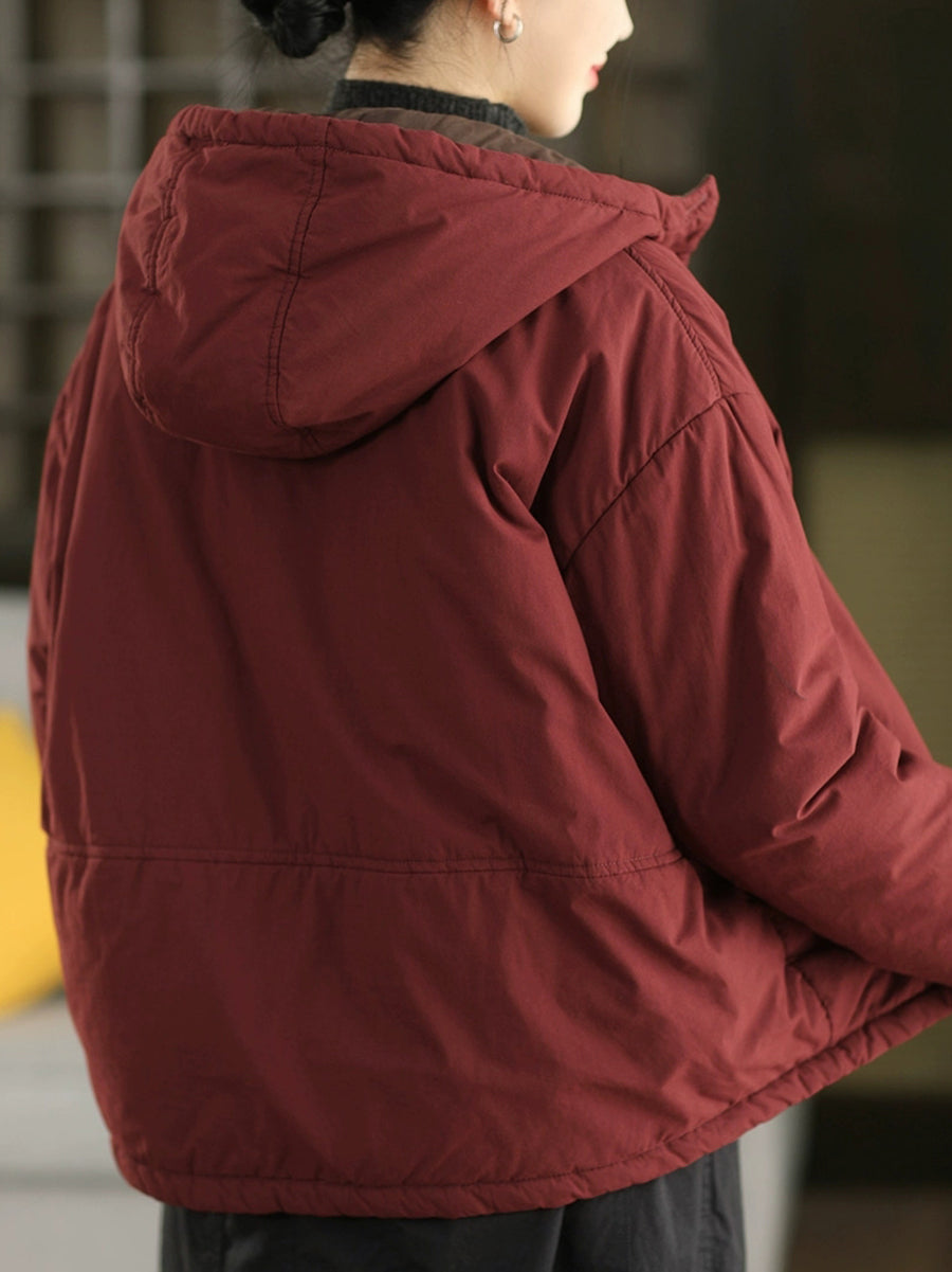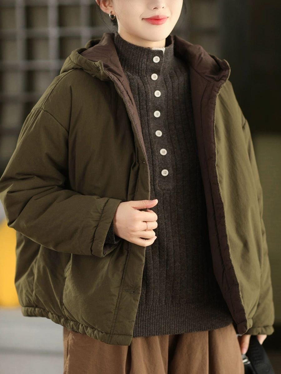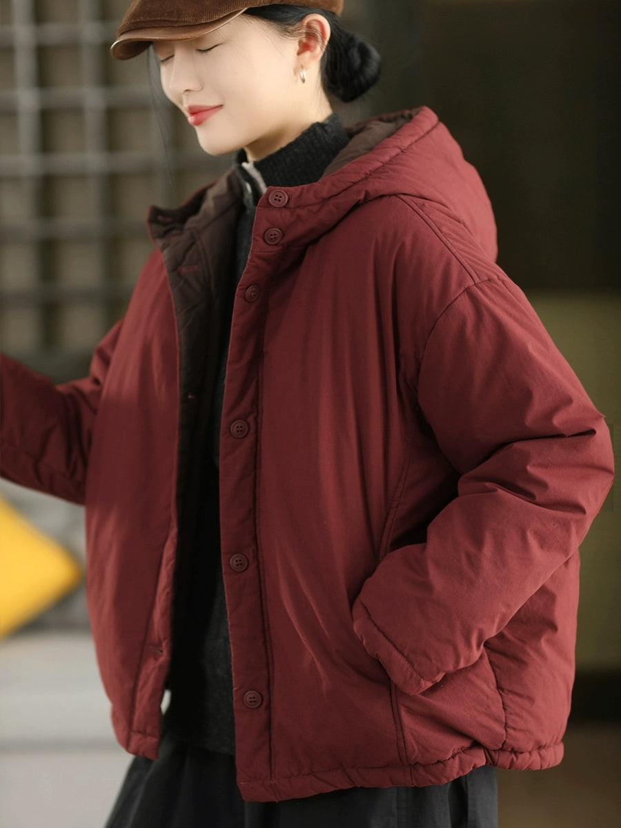 Damen Winter Retro einfarbiger Kapuzen-Wattierter Mantel mit Steppung