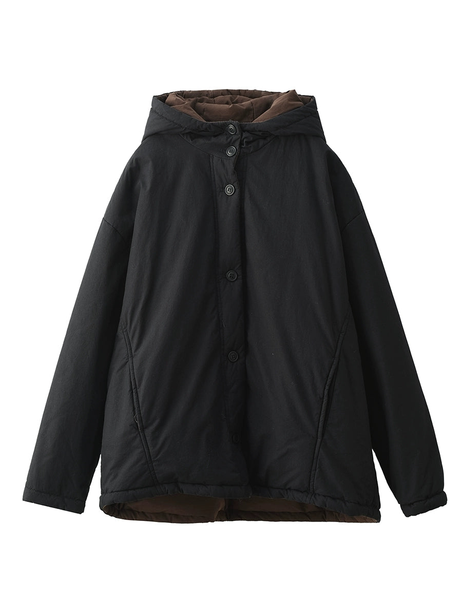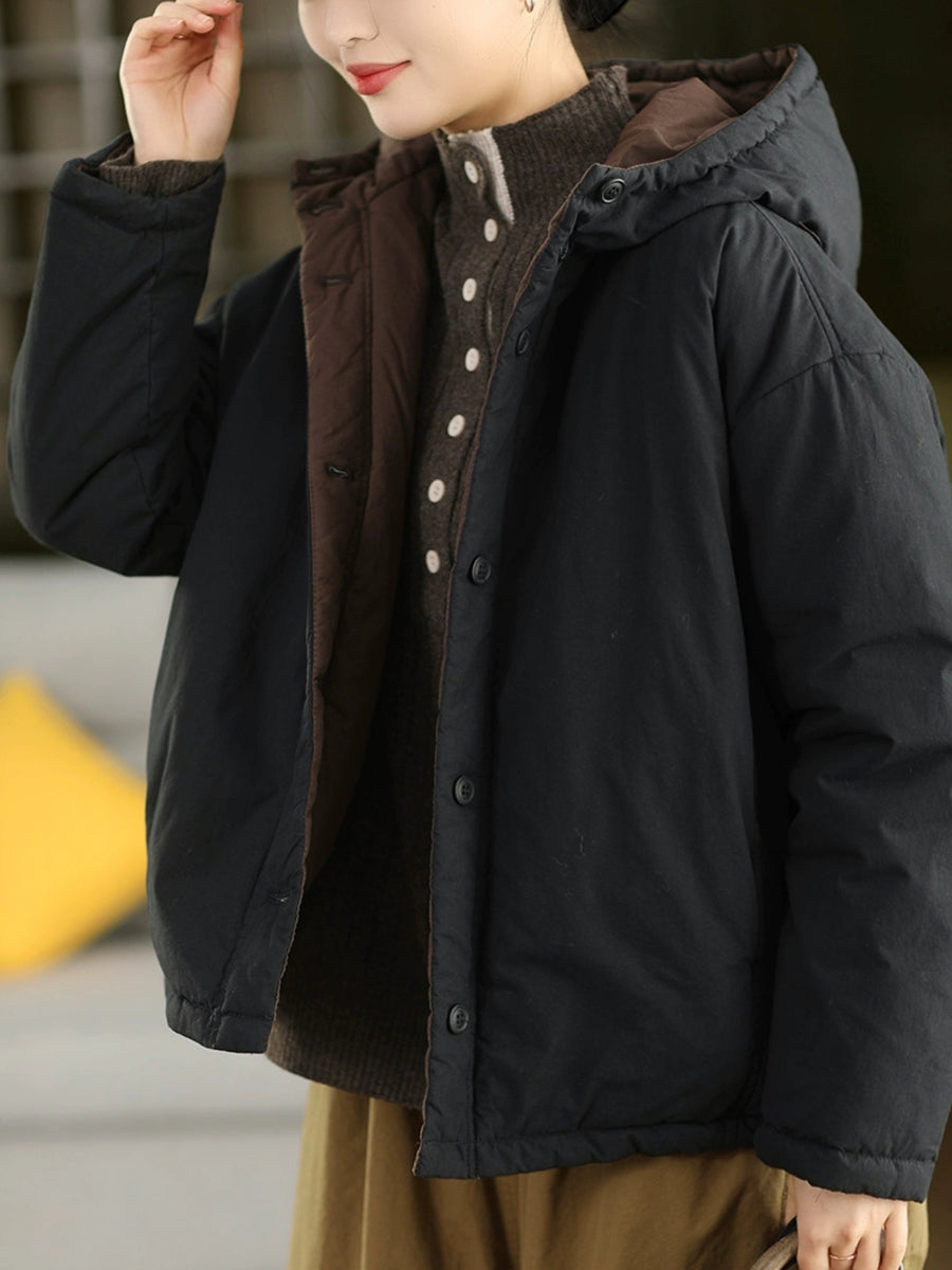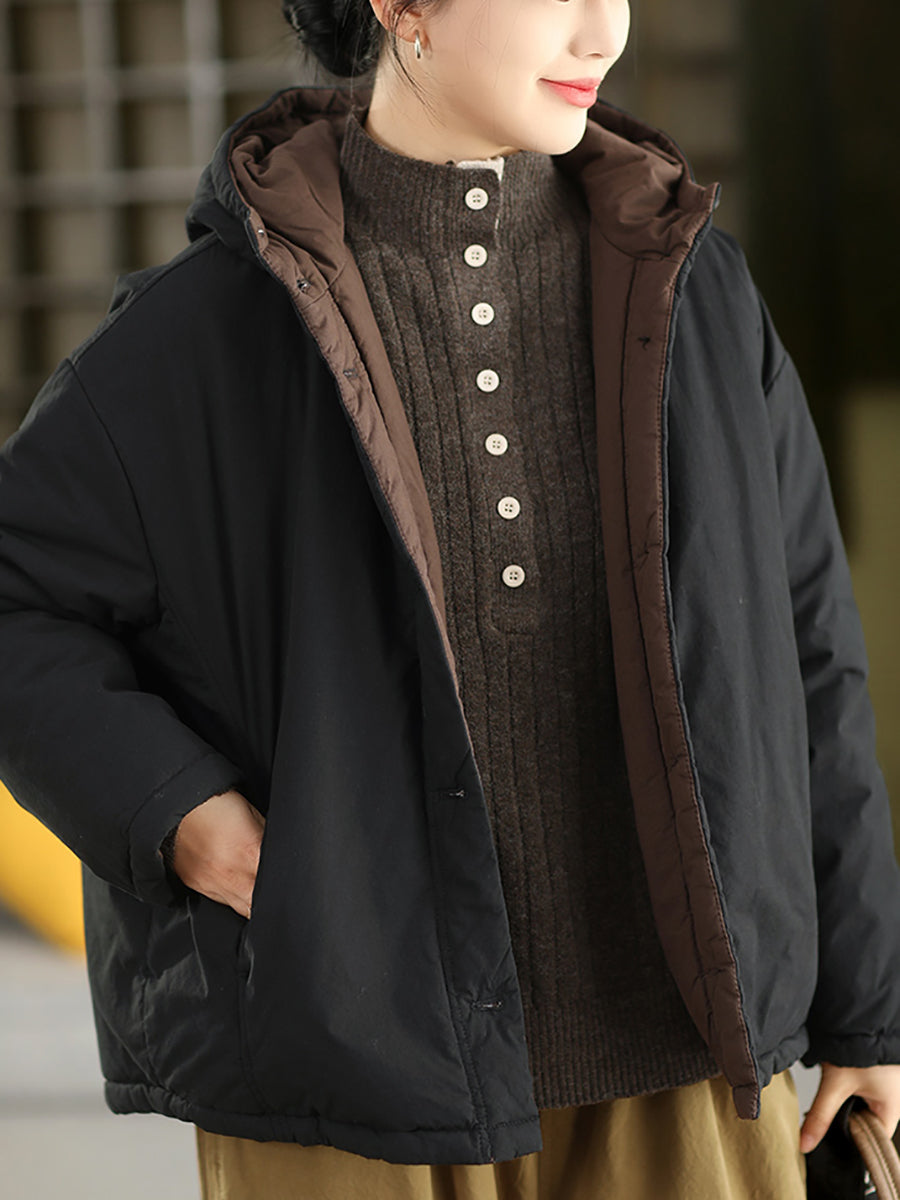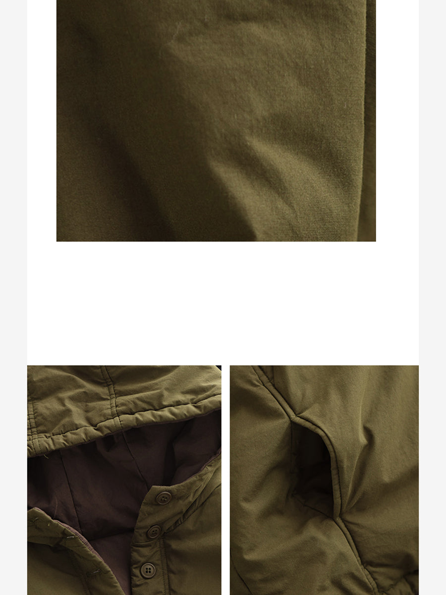 Damen Winter Retro einfarbiger Kapuzen-Wattierter Mantel mit Steppung