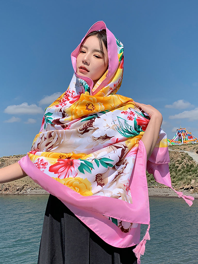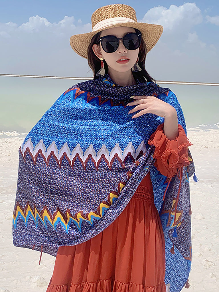 Damen Schal mit ethnischem Print und Quaste