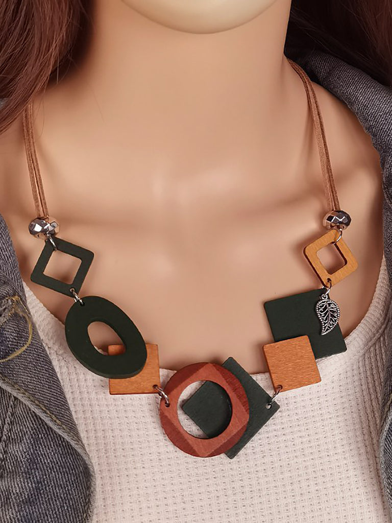 Lässige geometrische Halskette aus Holz und Harz für Damen