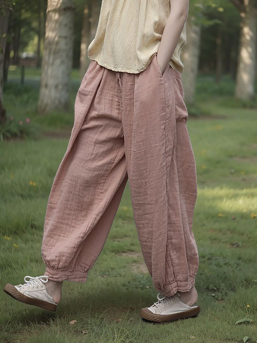 Damen Sommer Reine Farbe 100% Baumwolle Haremshose