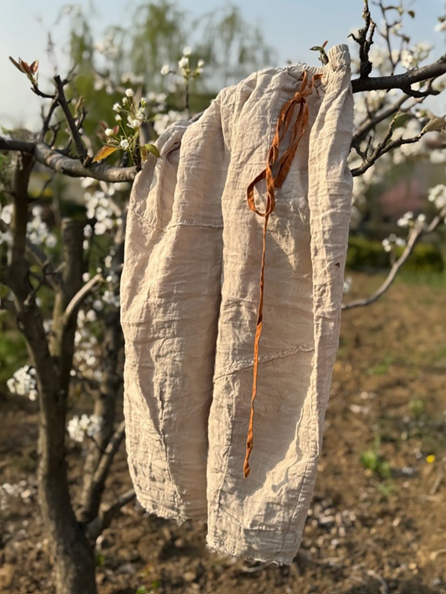 Damen Sommerhose mit weitem Bein aus 100 % Leinen in reiner Farbe
