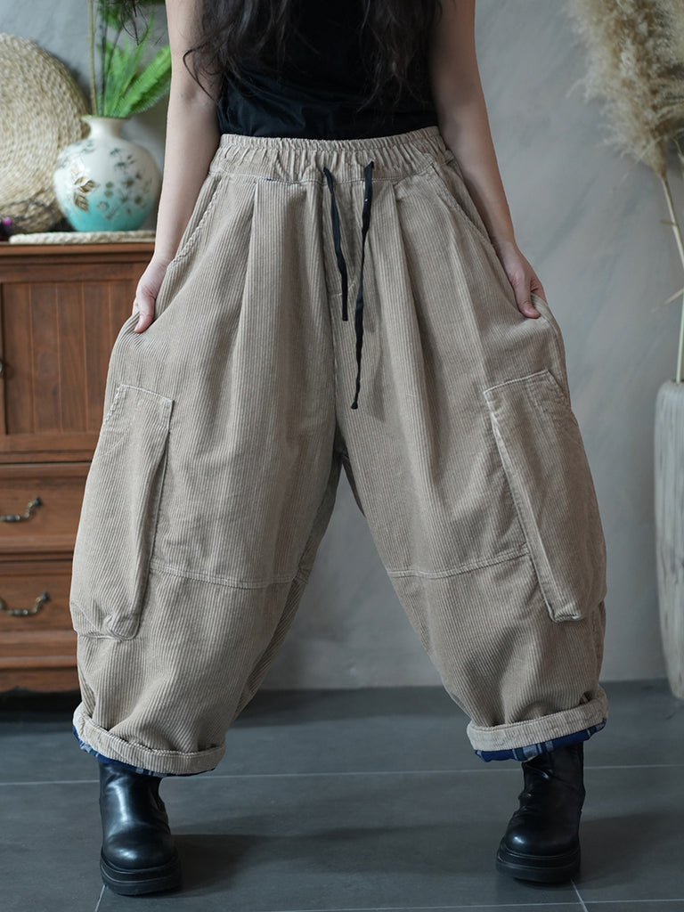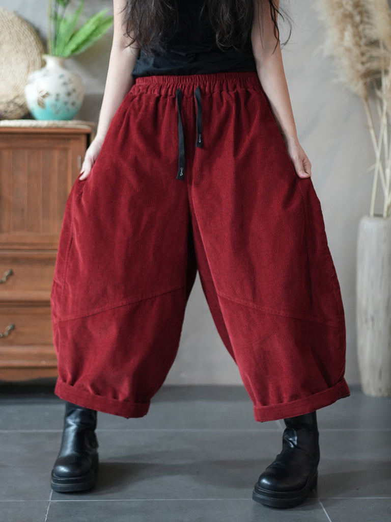 Damen Winter Retro Einfarbig Gepolsterte Weite Hose