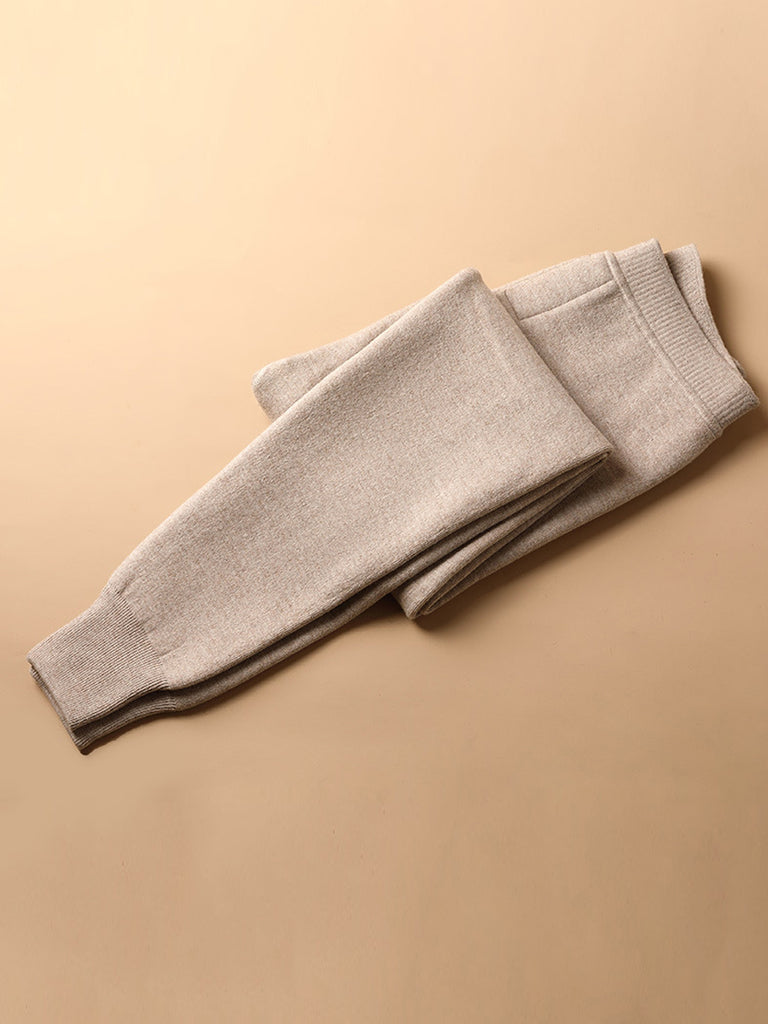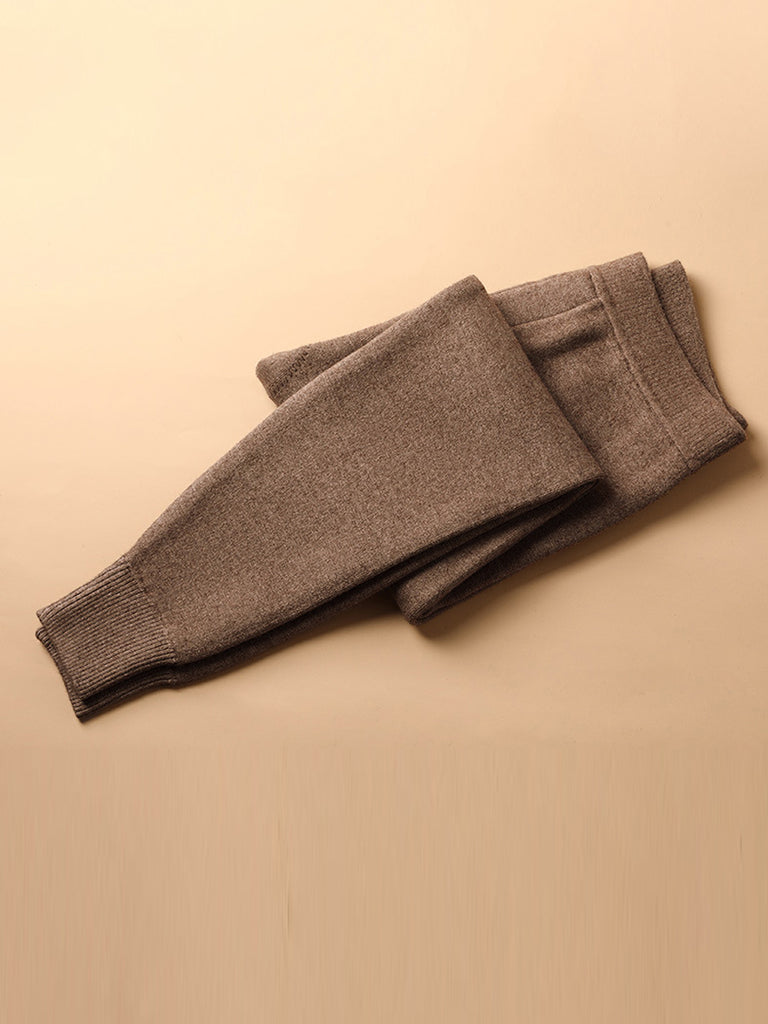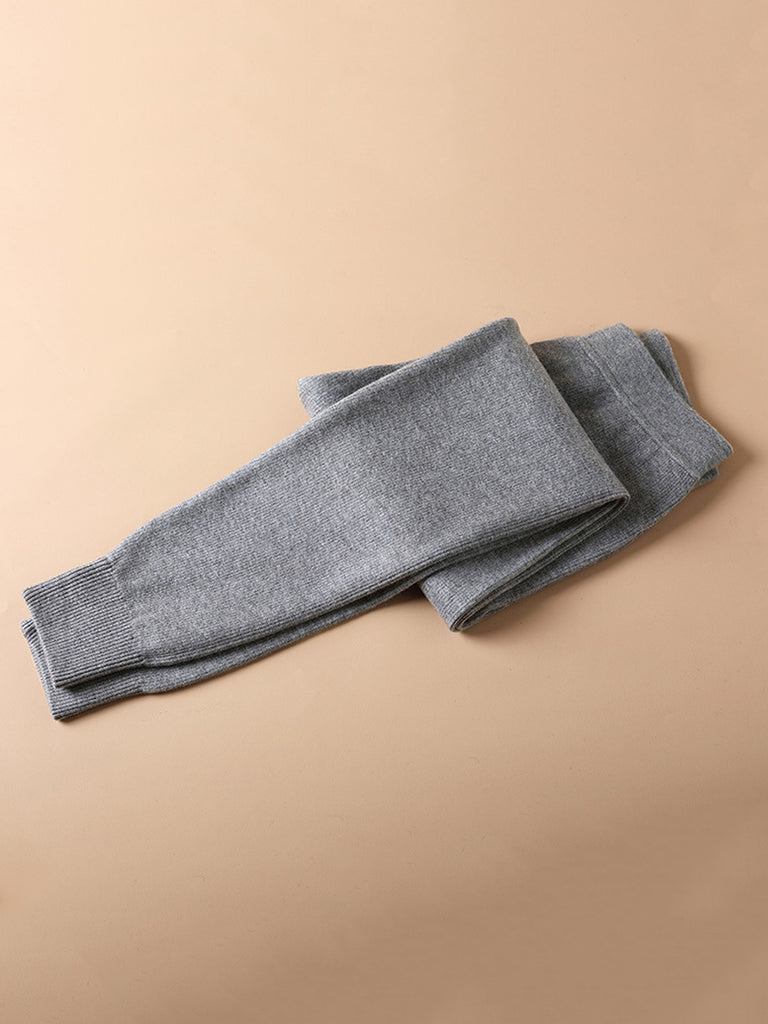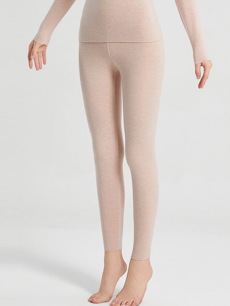 Winterwarme, einfarbige, fleecegefütterte Wollleggings mit Fleece-Futter