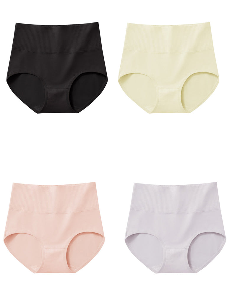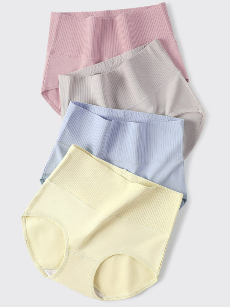 4-teiliges Set Damen-Unterwäsche in Unifarben mit hohem Bund