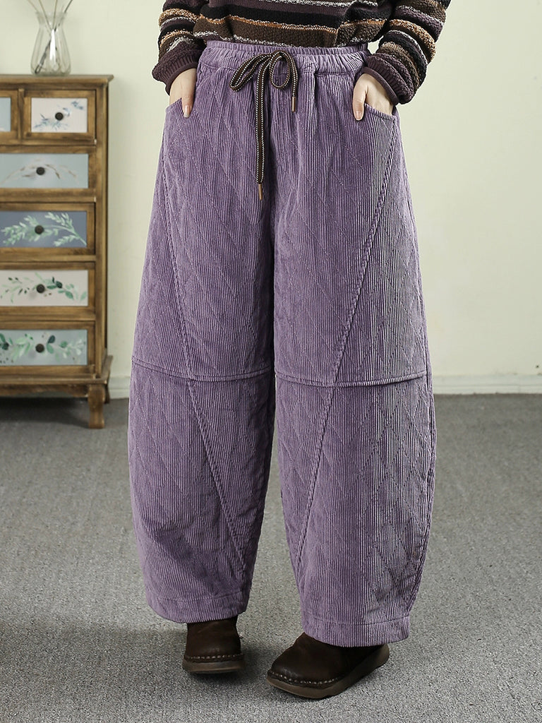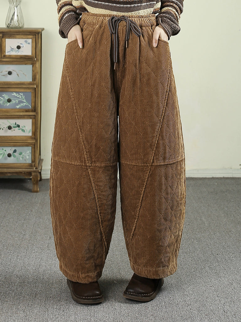 Damen Winter Retro Cord-Puffhose in Unifarben, wattiert