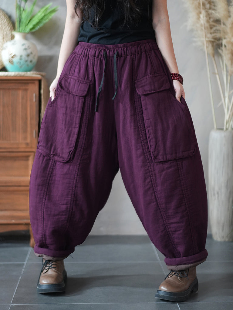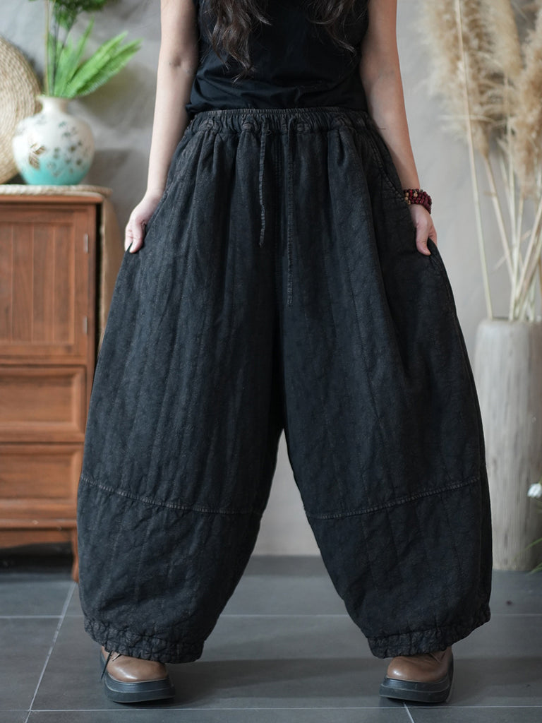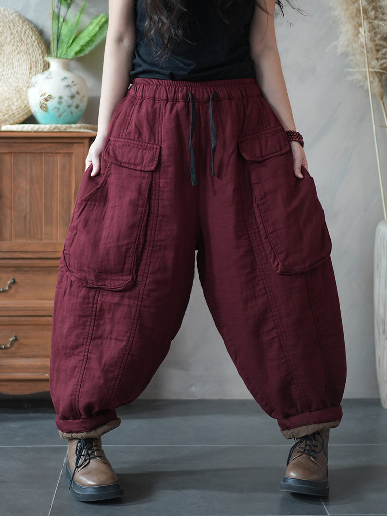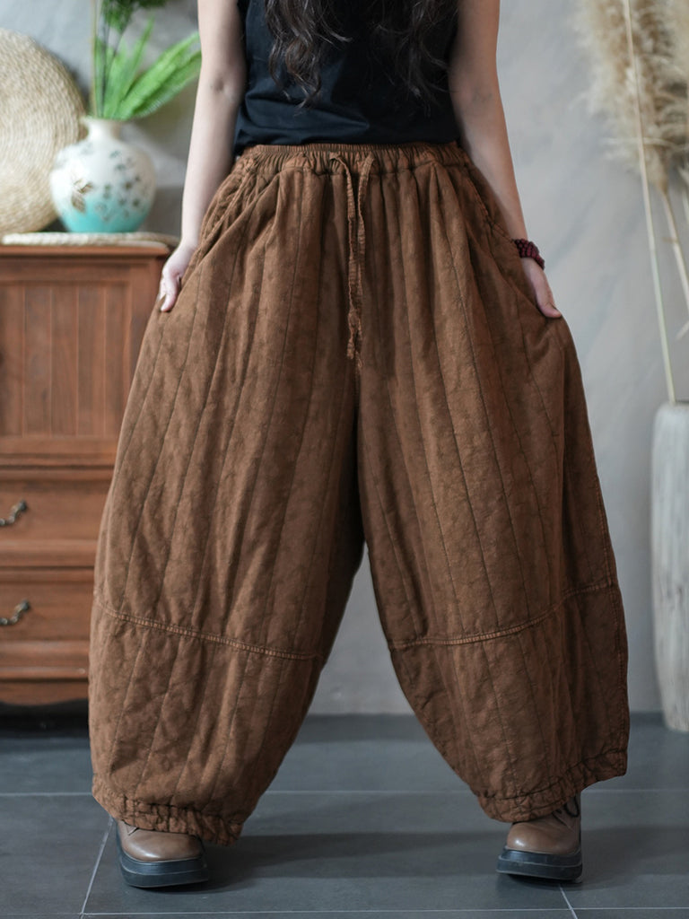 Damen Winter Retro Einfarbig Gepolsterte Haremshose im Retro-Stil für Damen, wattiert