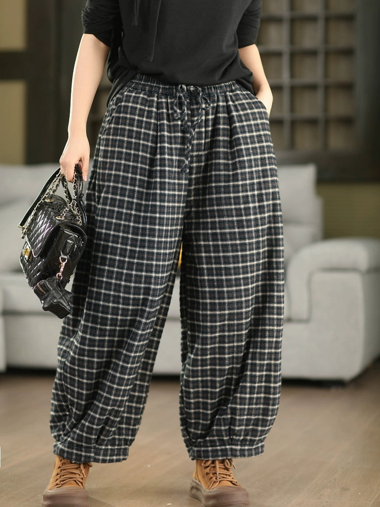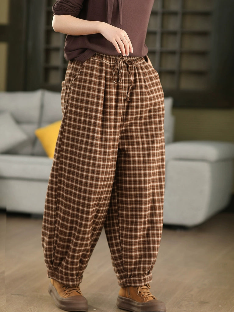 Damen Winter Retro Karohose aus 100% Baumwolle, wattiert
