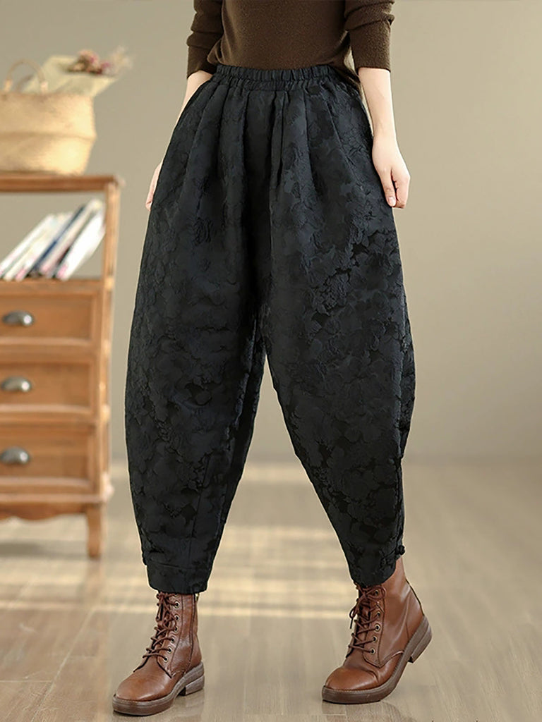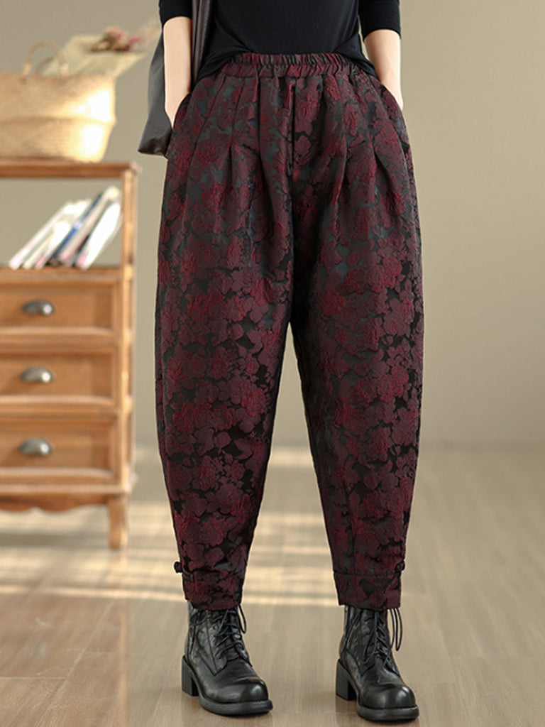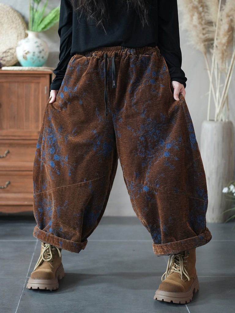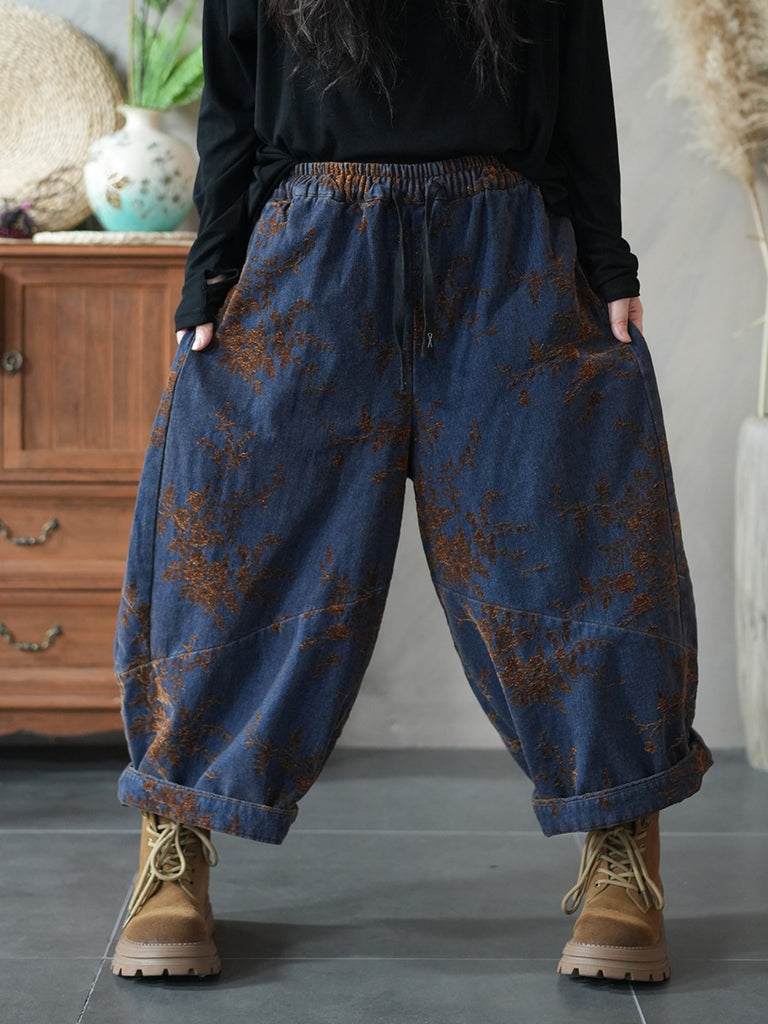 Damen Winter Retro Blumen Gepolsterte Haremshose