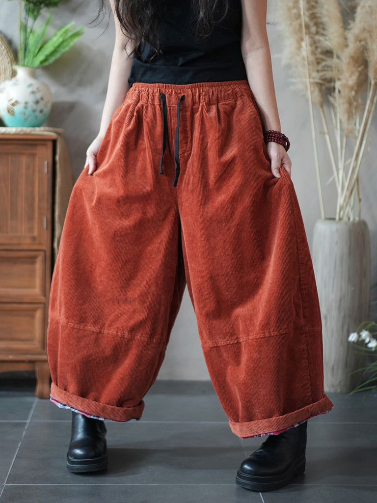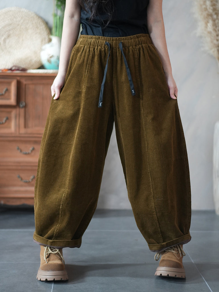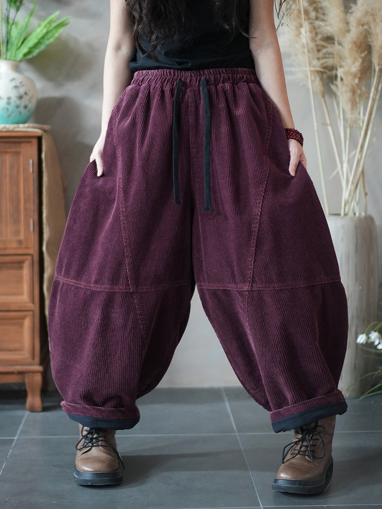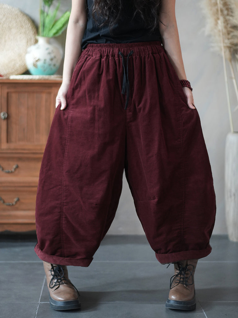 Damen Winter Retro Cord Haremshose in Unifarben