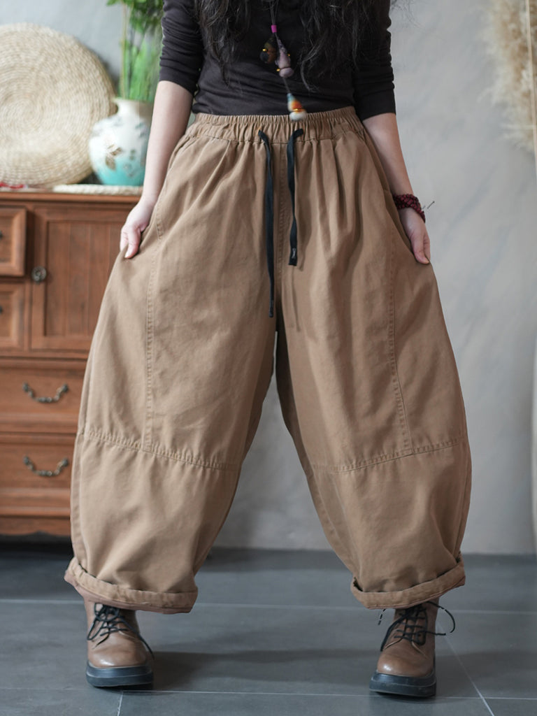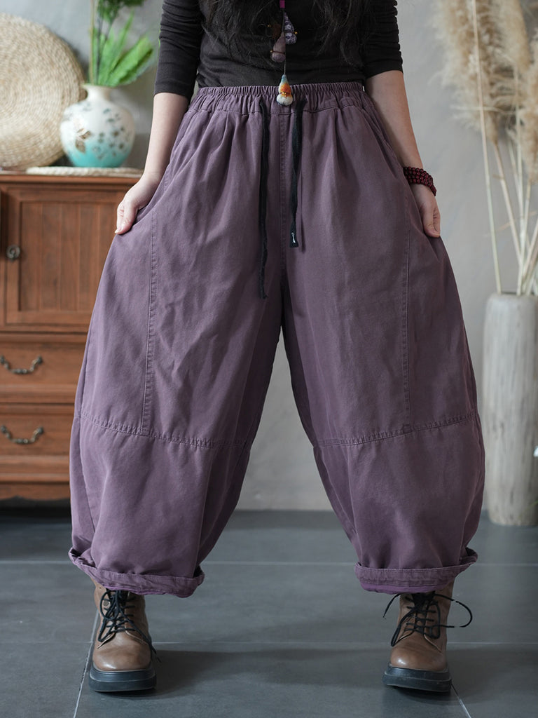 Damen Winter Retro Haremshose in Unifarben aus 100% Baumwolle