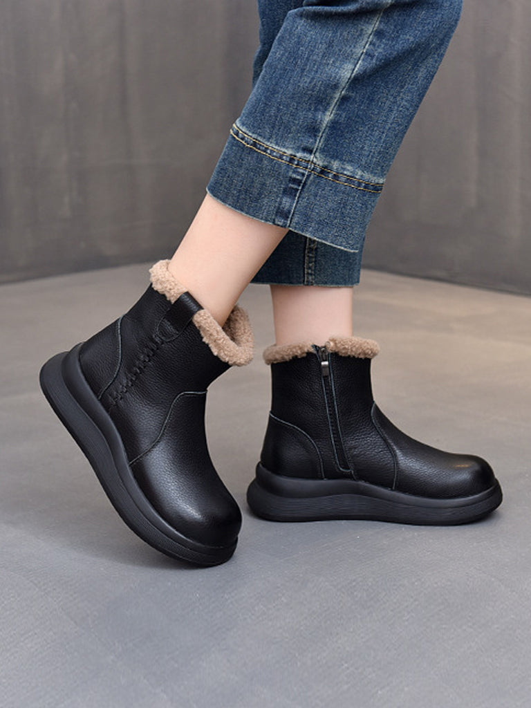Damen Winter Pure Color Echtleder Flache Stiefeletten