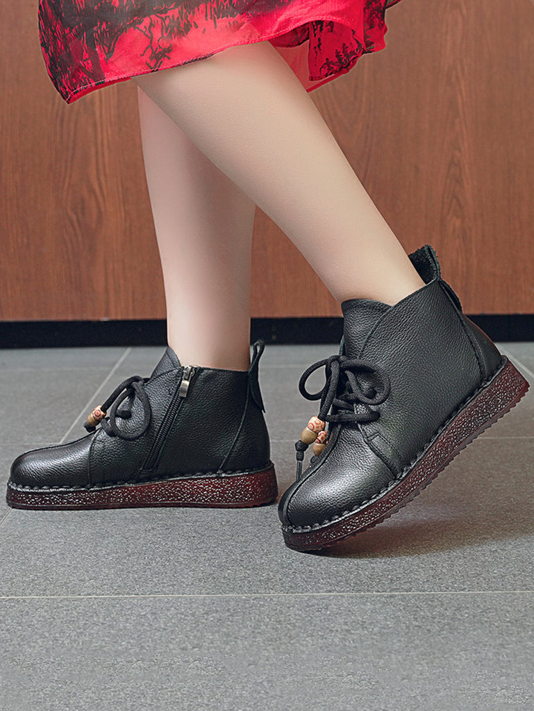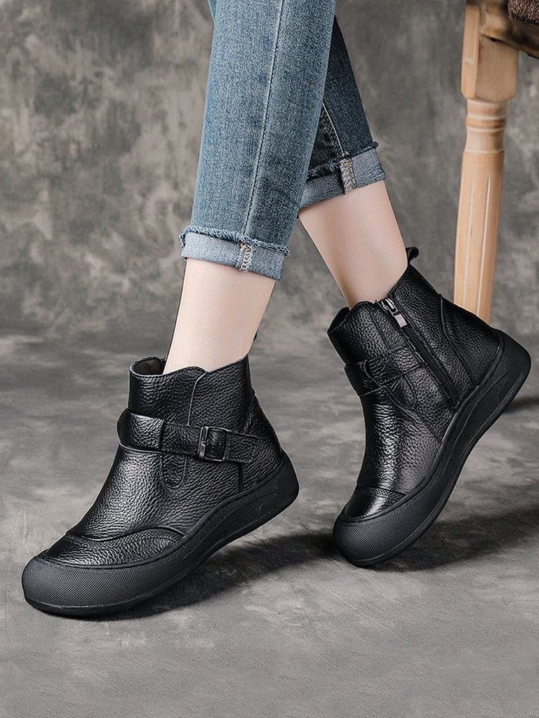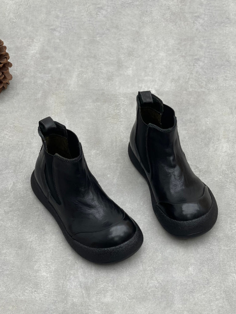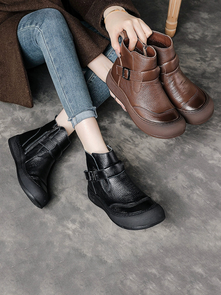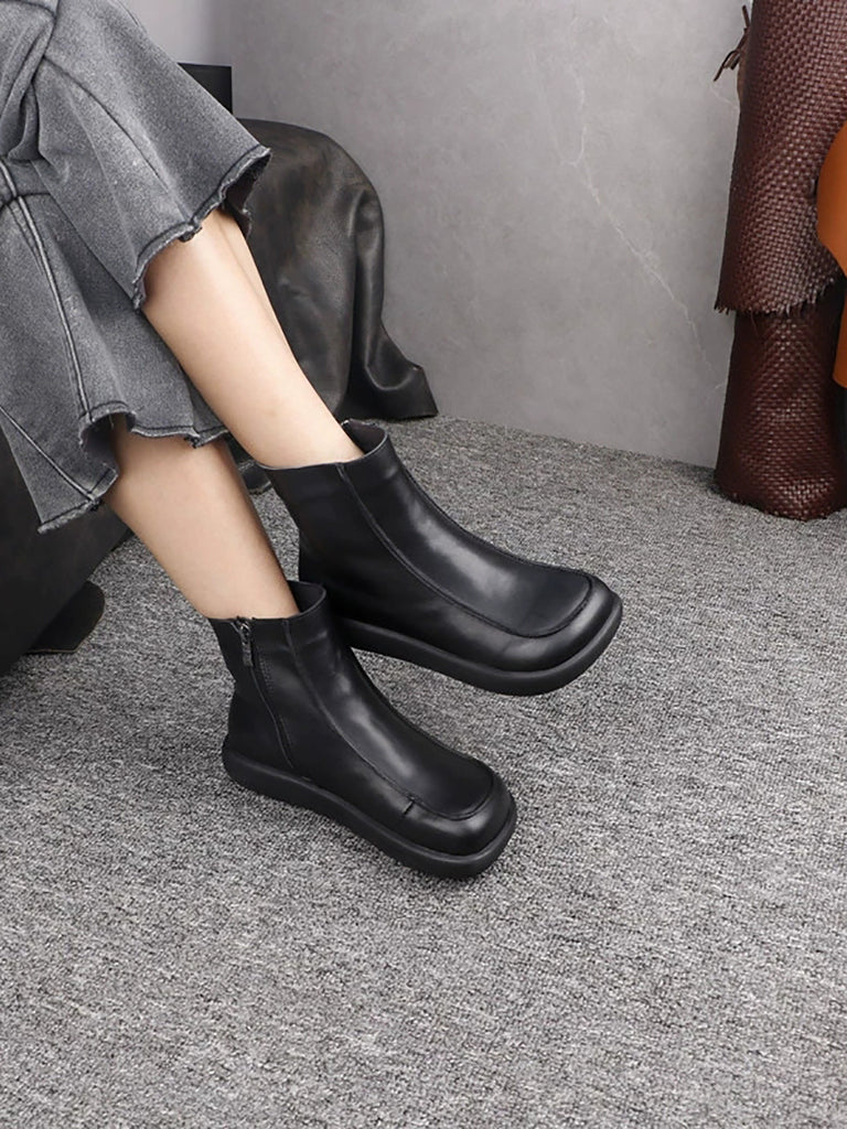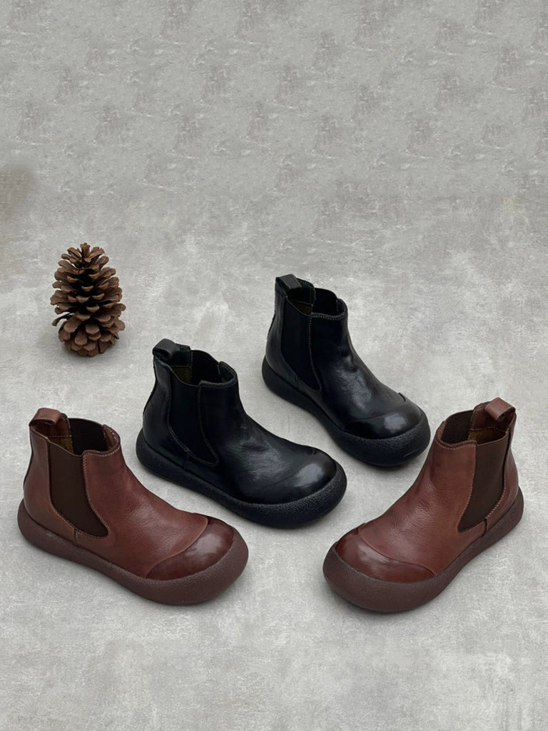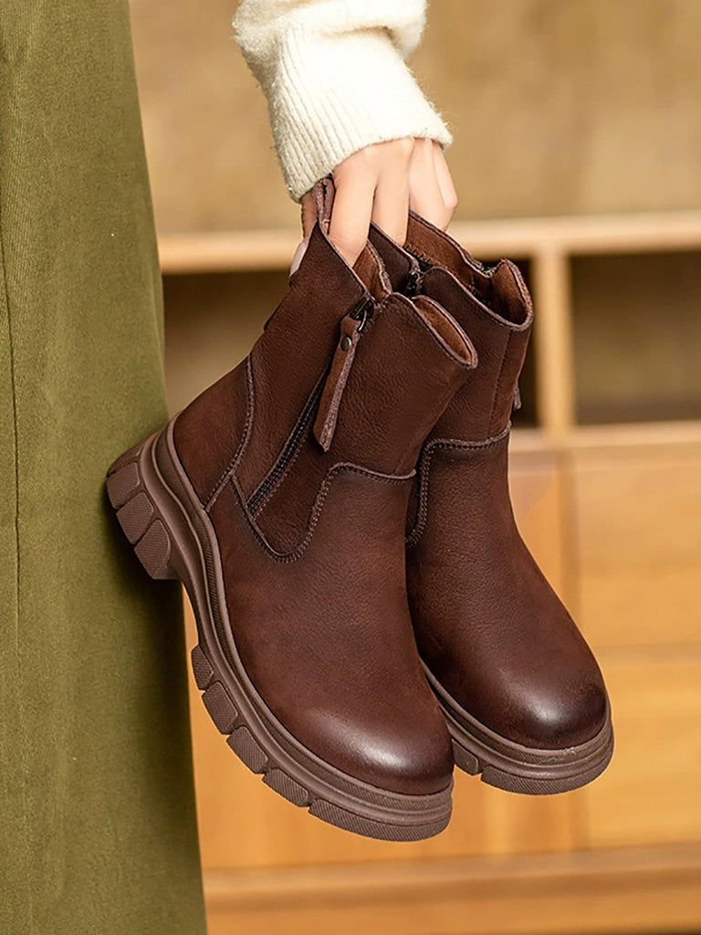 Damen Vintage Pure Color Echtleder Stiefeletten