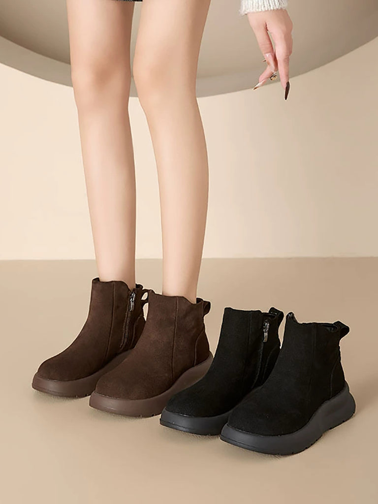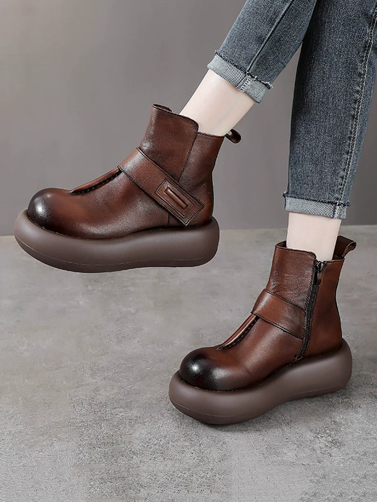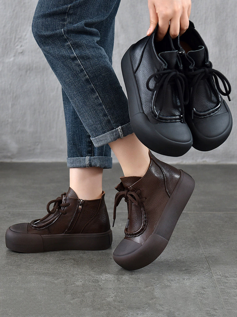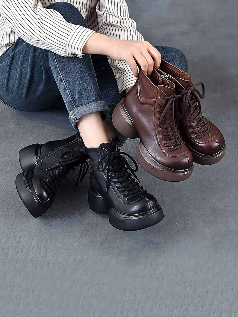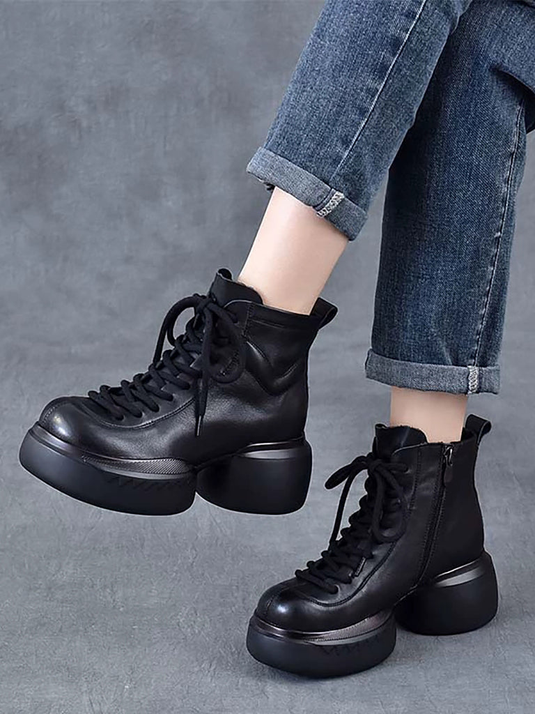 Damen Vintage Pure Color Leder Plateau Stiefeletten