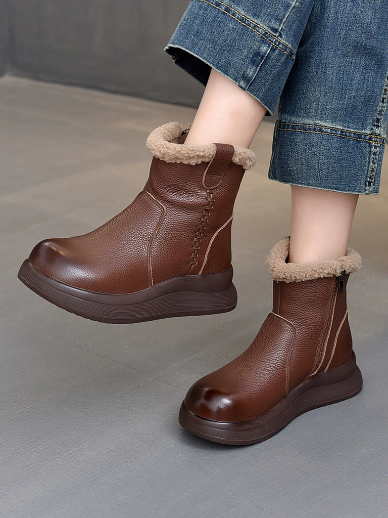 Damen Vintage Echtleder Gespleißte Fleece-gefütterte Stiefel