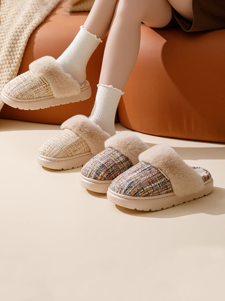 Paar Winter Hausschuhe aus Plüsch in Unifarben