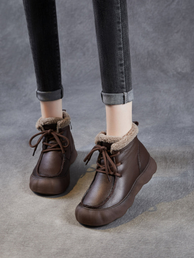 Vintage-Stiefeletten für Damen aus echtem Leder mit Fleecefutter