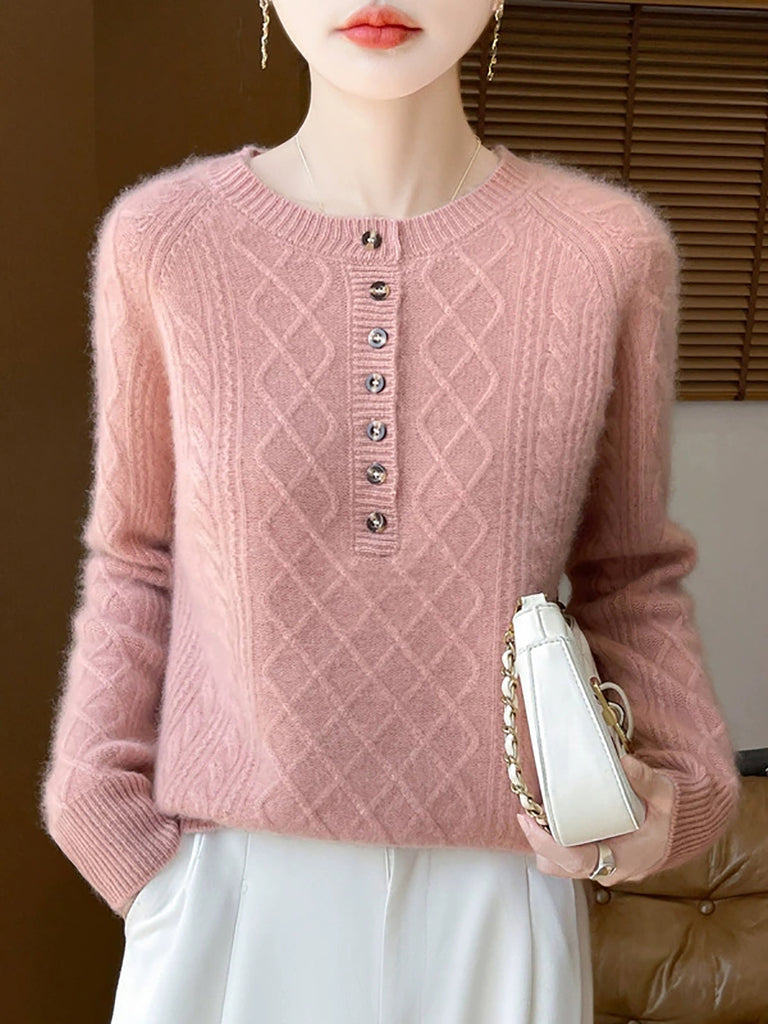 Damen Herbst Vintage Rhomboids Wolle O-Ausschnitt Pullover
