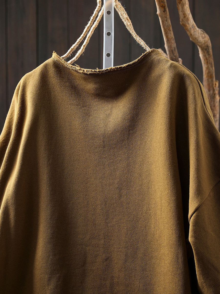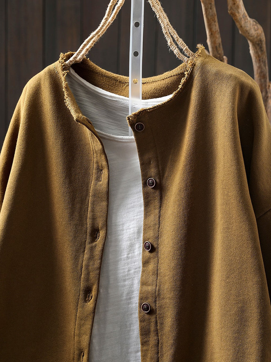 Damen Frühlingsmantel aus reiner Baumwolle mit Rundhalsausschnitt, einfarbig