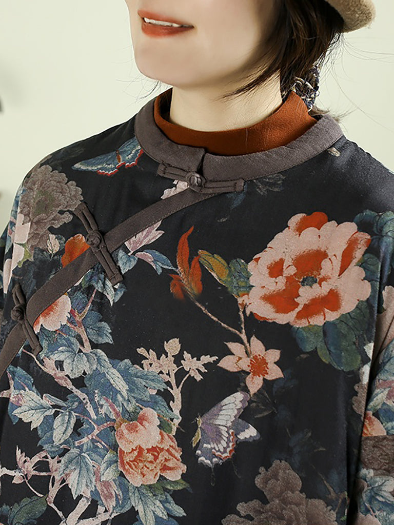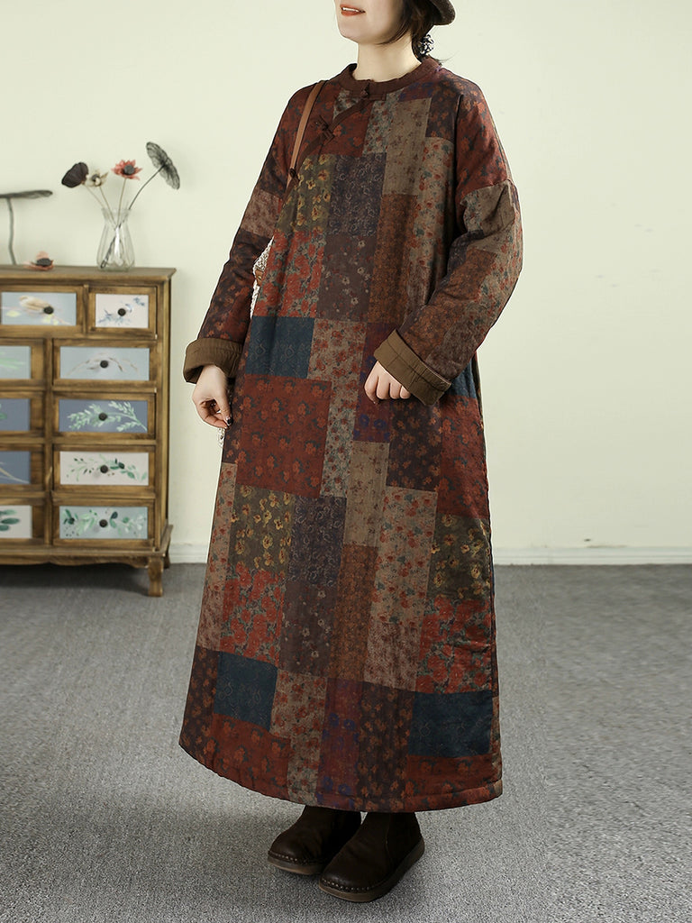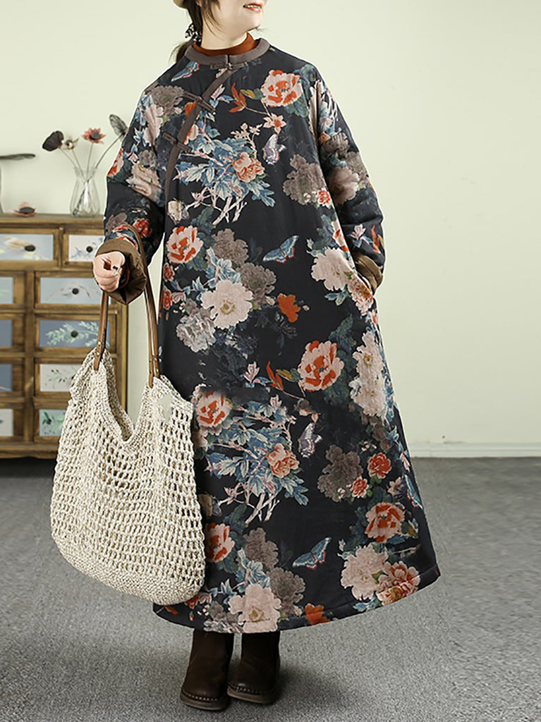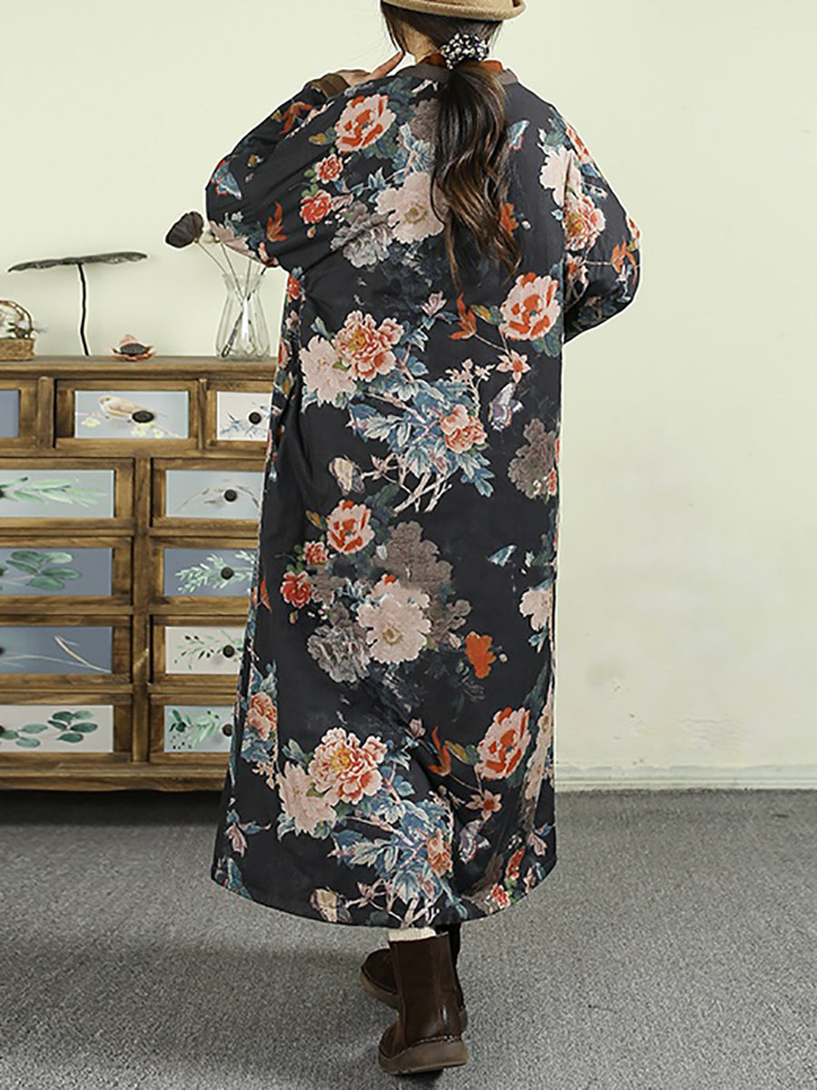 Damen Wintermantel mit Blumenmuster, Rundhalsausschnitt, wattiert, 100 % Baumwolle