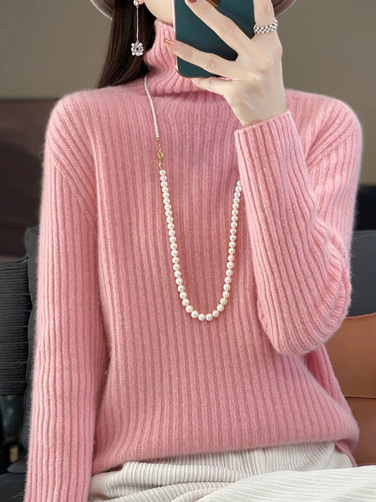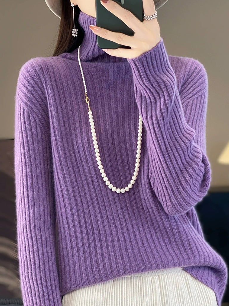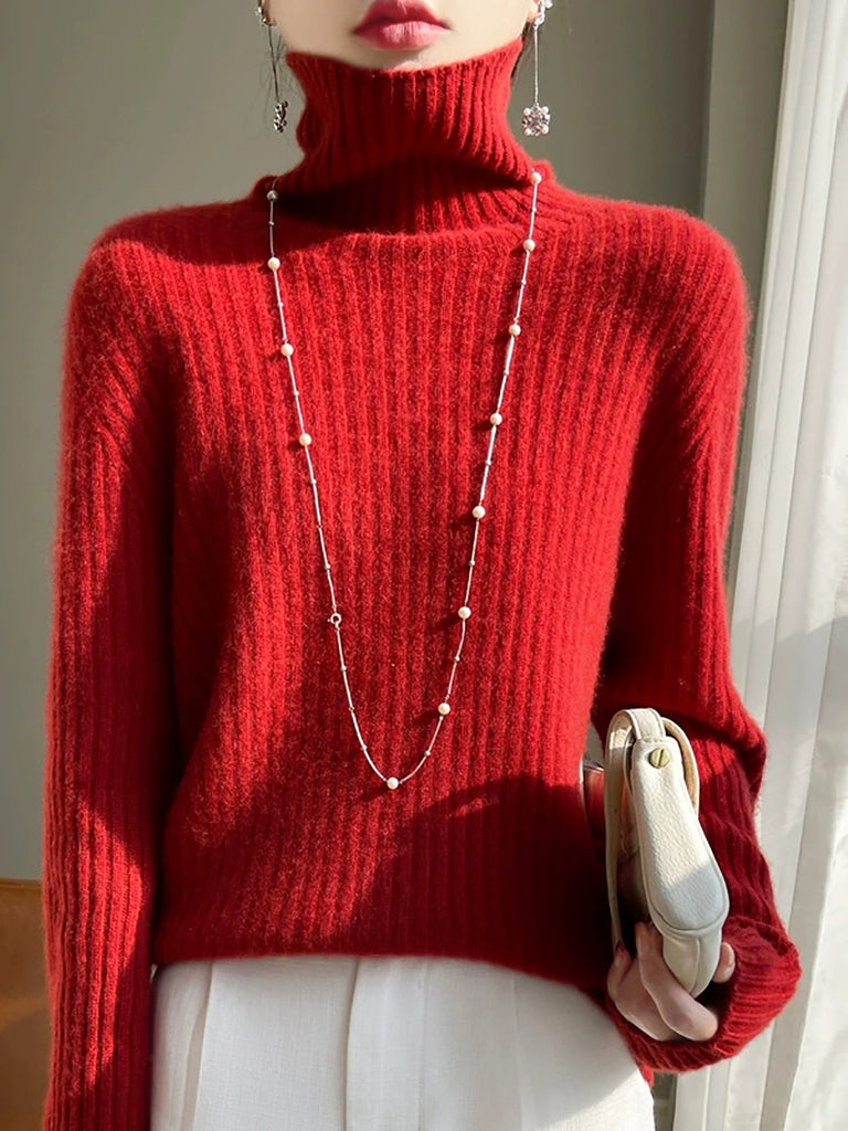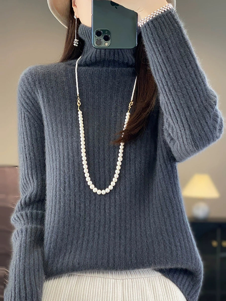 Damen Winterpullover aus einfarbiger Wolle mit Rollkragen