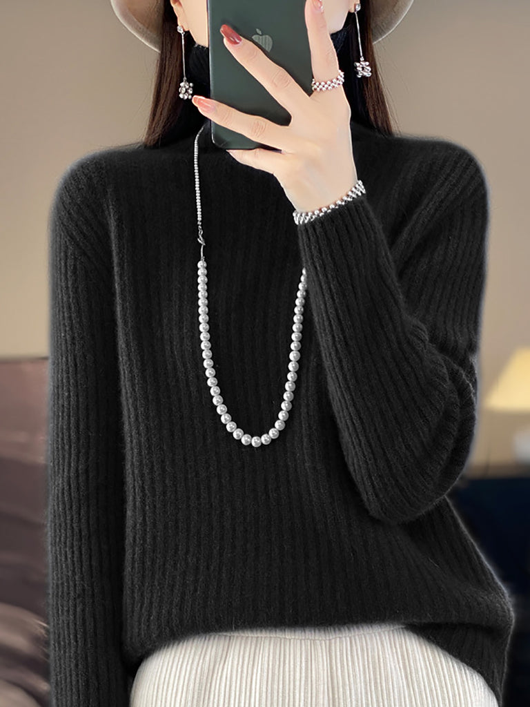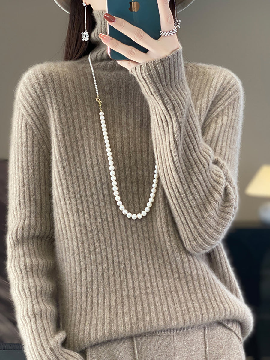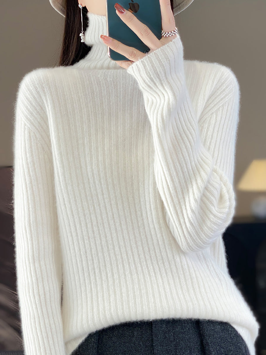 Damen Winterpullover aus einfarbiger Wolle mit Rollkragen