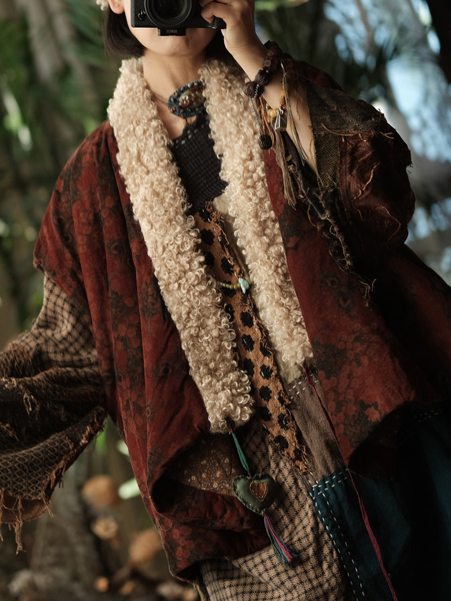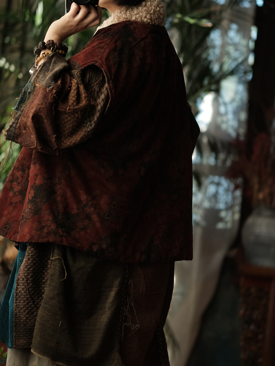 Damen Winterweste Vintage Blumen Fleece mit Steppung und Einsätzen