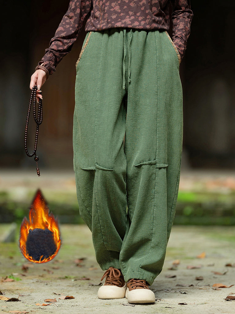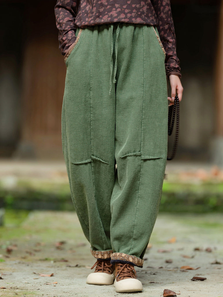 Damen Vintage Herbst Feste Lose Ramie Manschettenhose