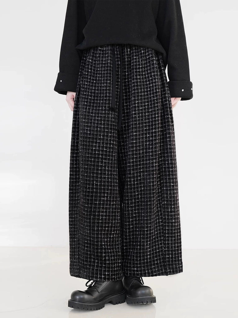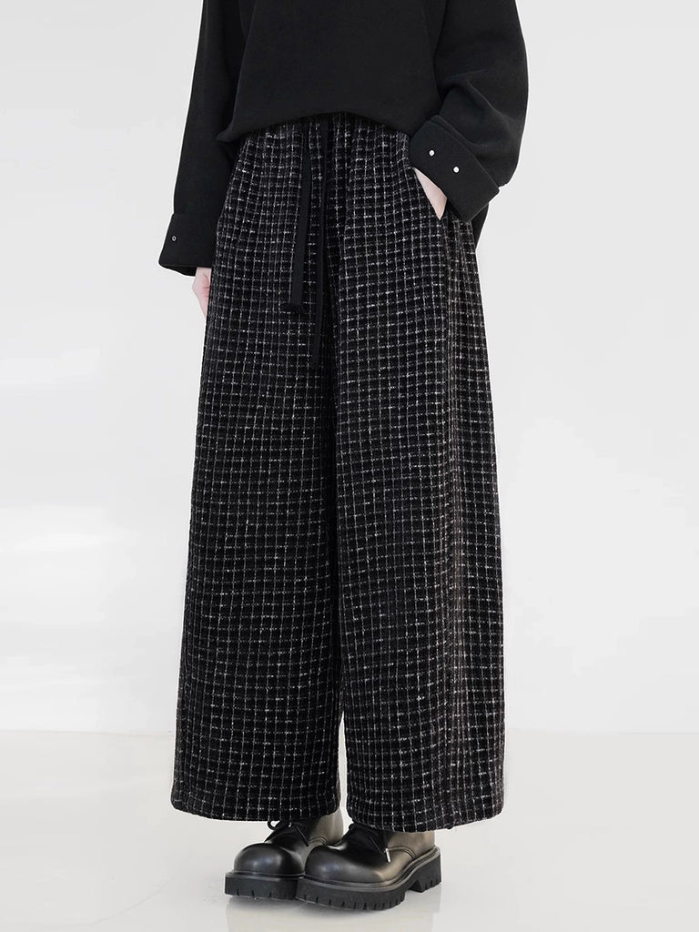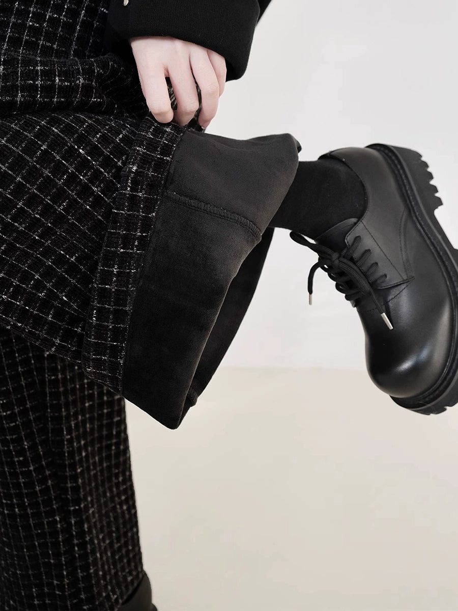 Damen Vintage Plaid Fleece-gefütterte gerade Hose