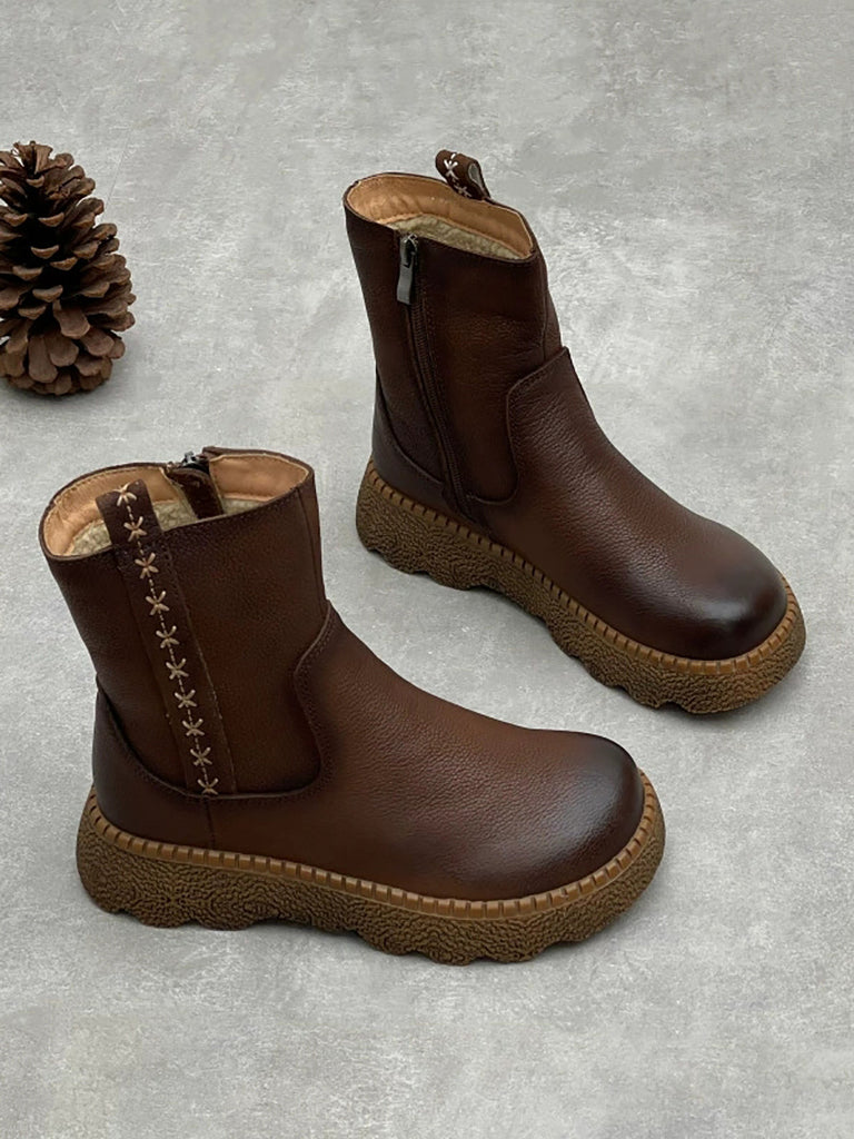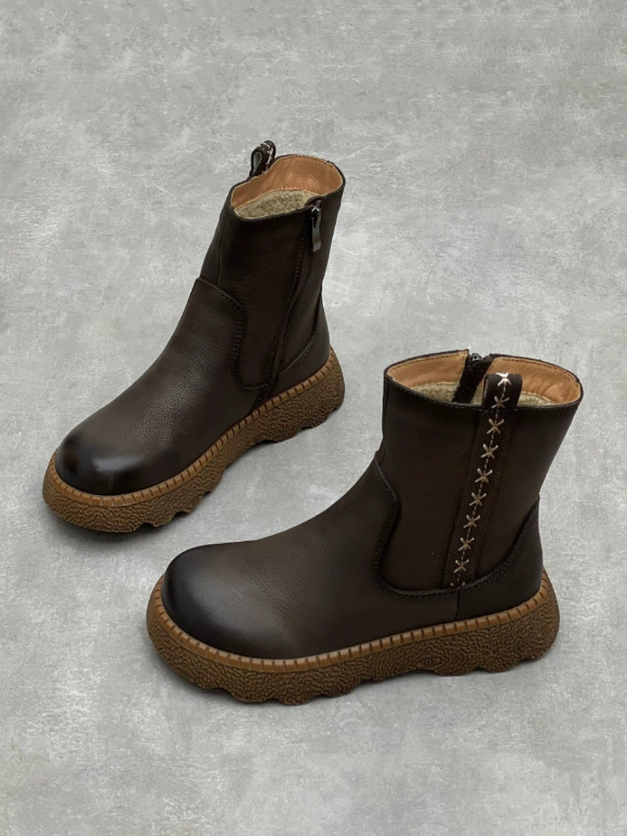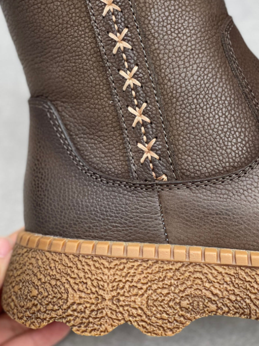 Damen Vintage Winterstiefel aus Leder mit Fleecefutter