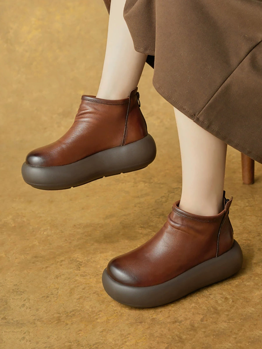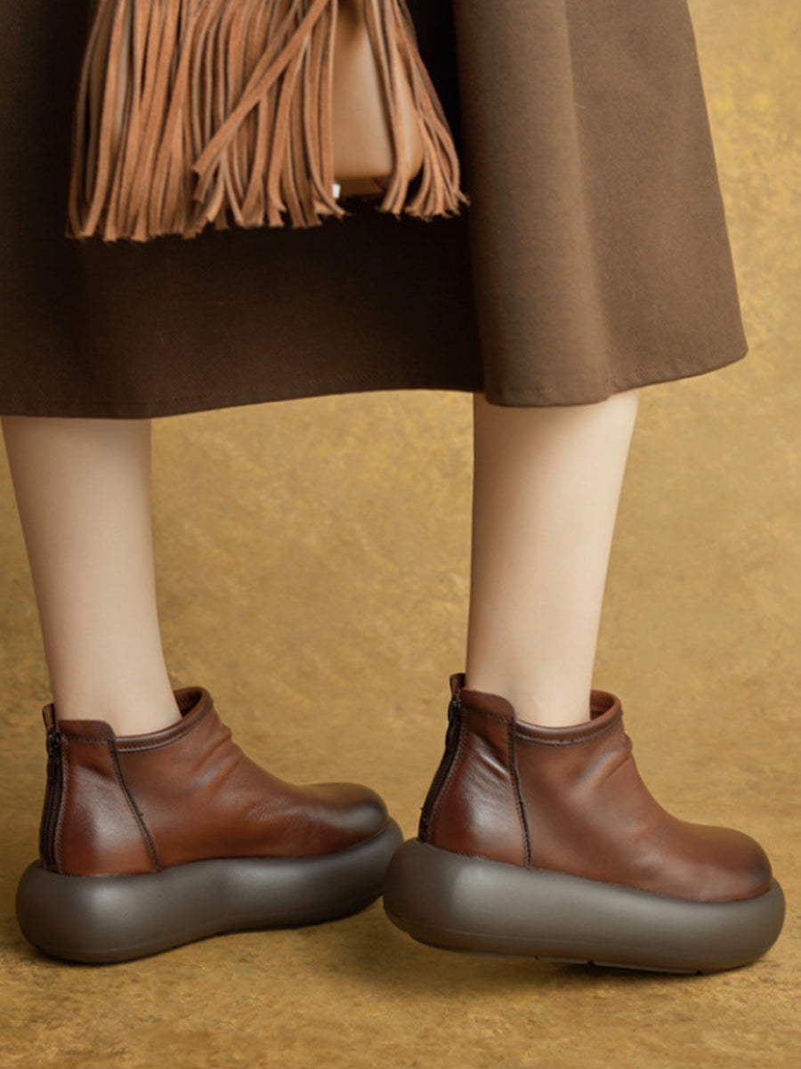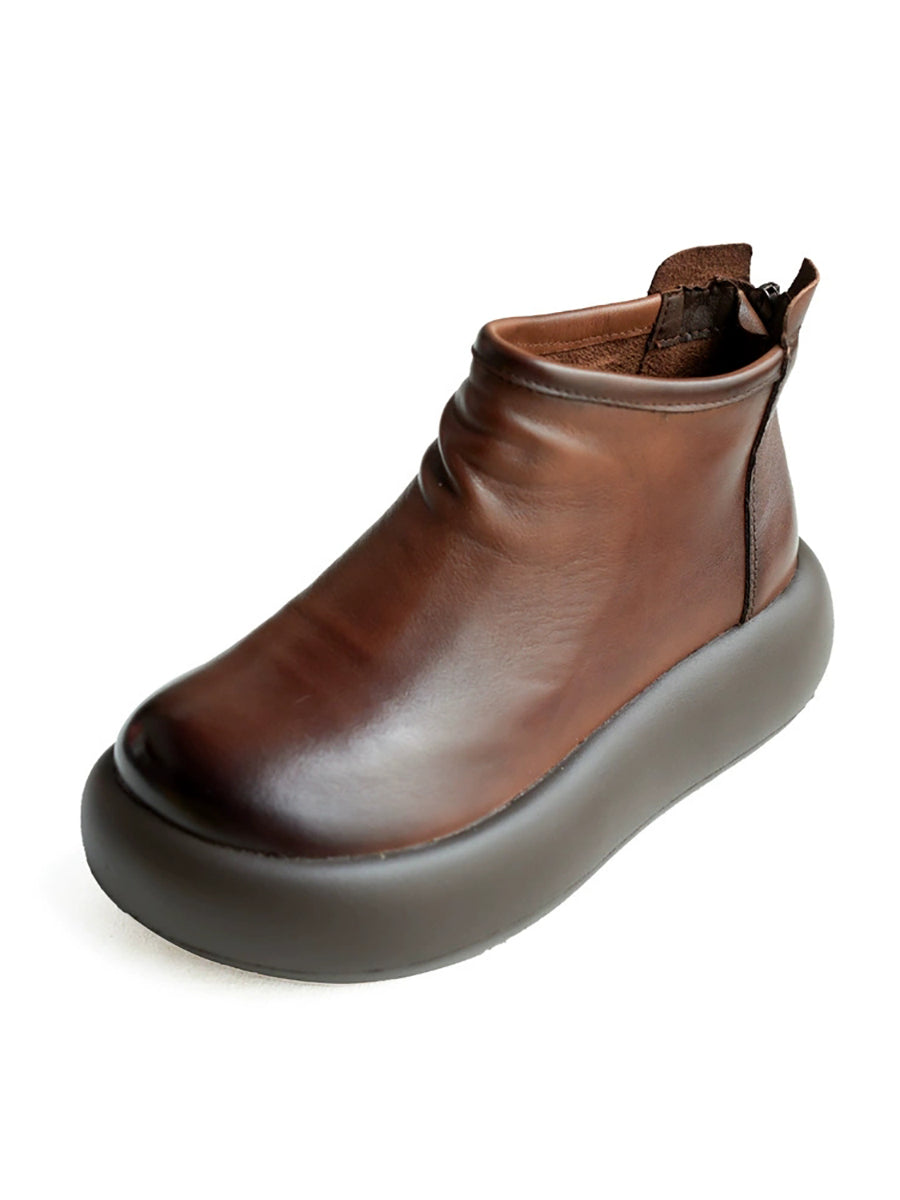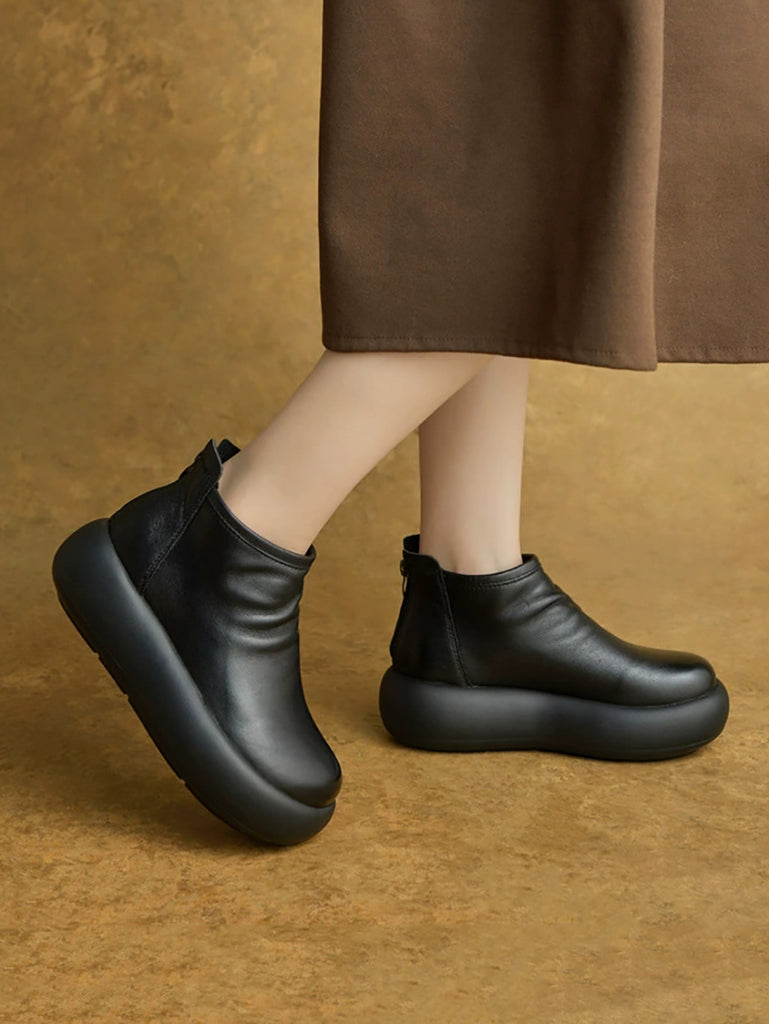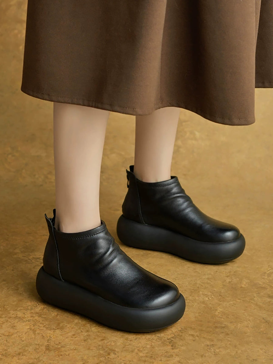Damen Winter Casual Pure Color Leder Plateaustiefel