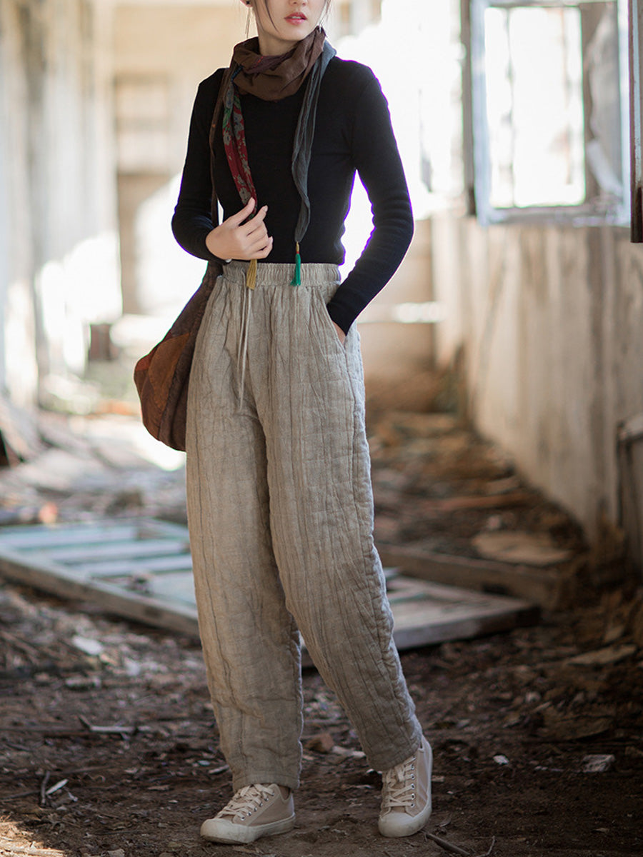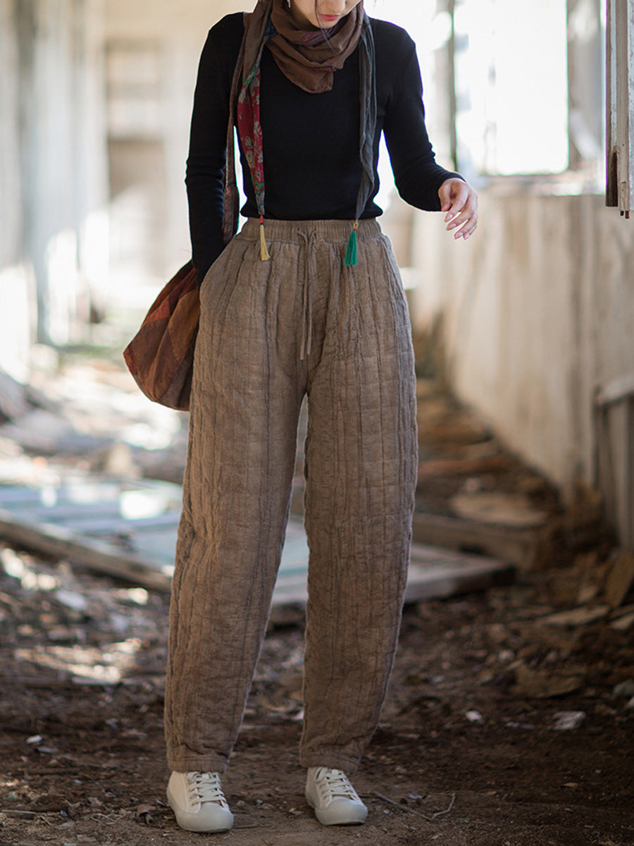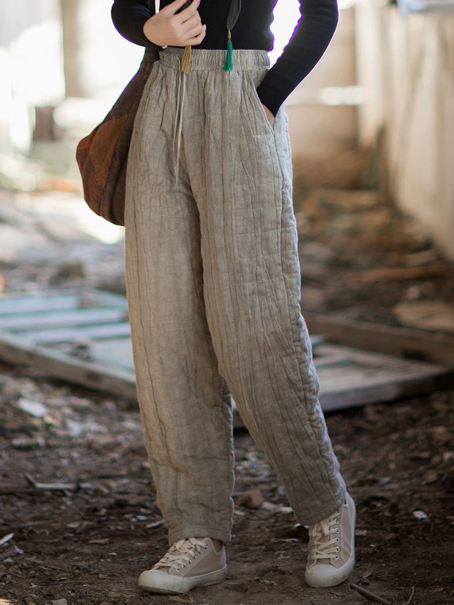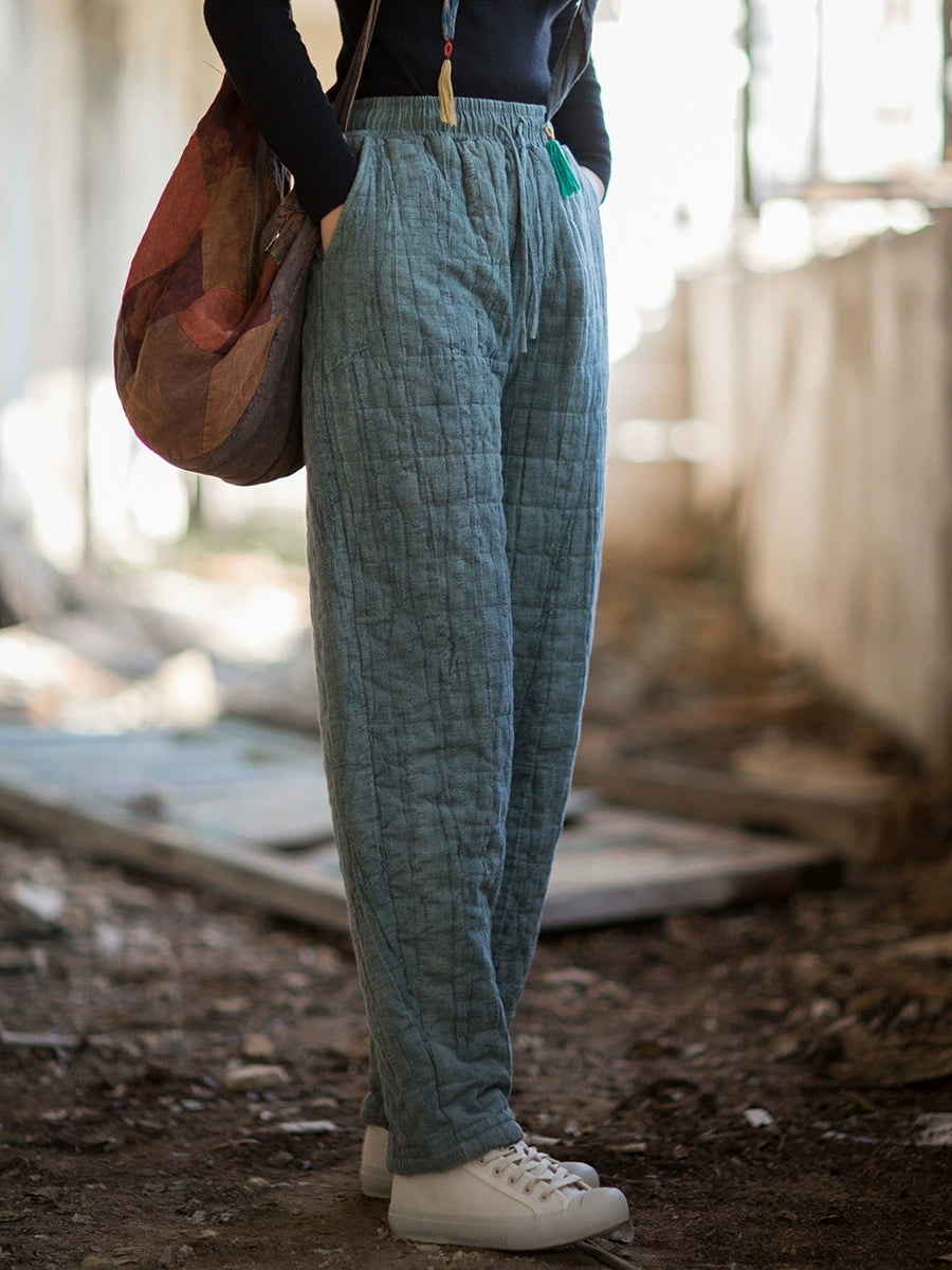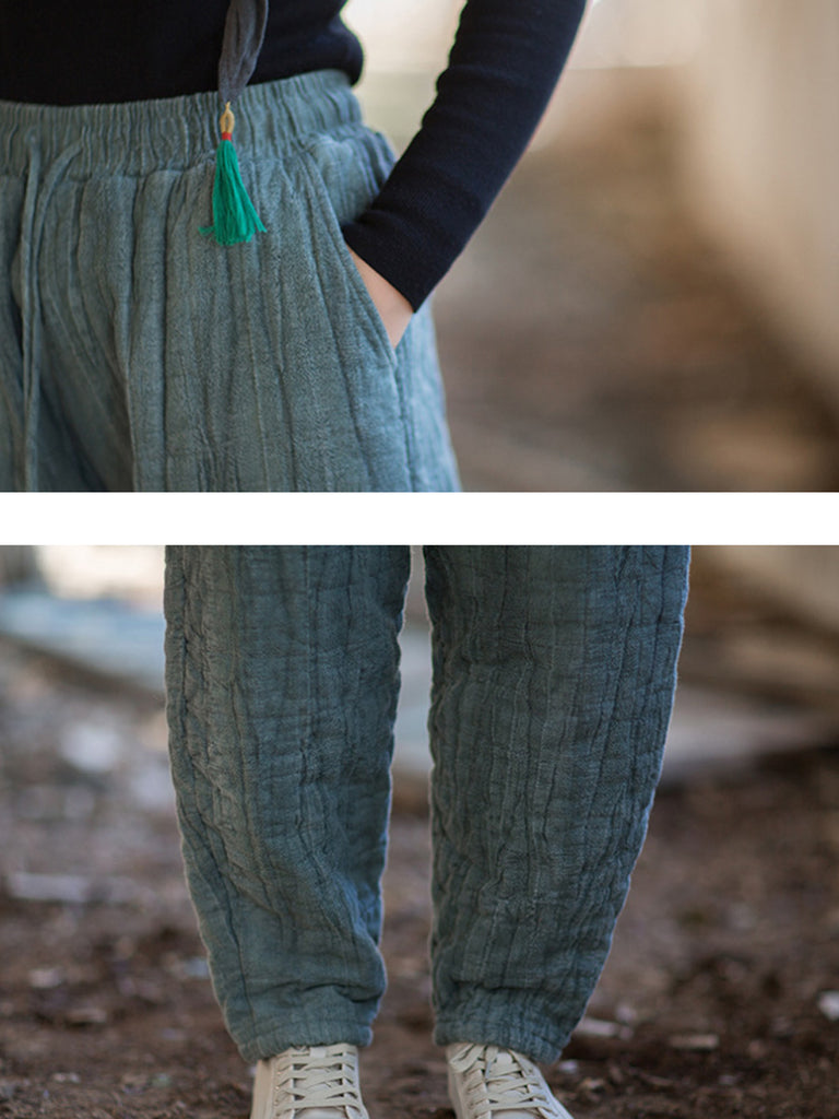 Damen Winter Retro Einfarbig Gepolsterte Haremshose im Retro-Stil für Damen, wattiert