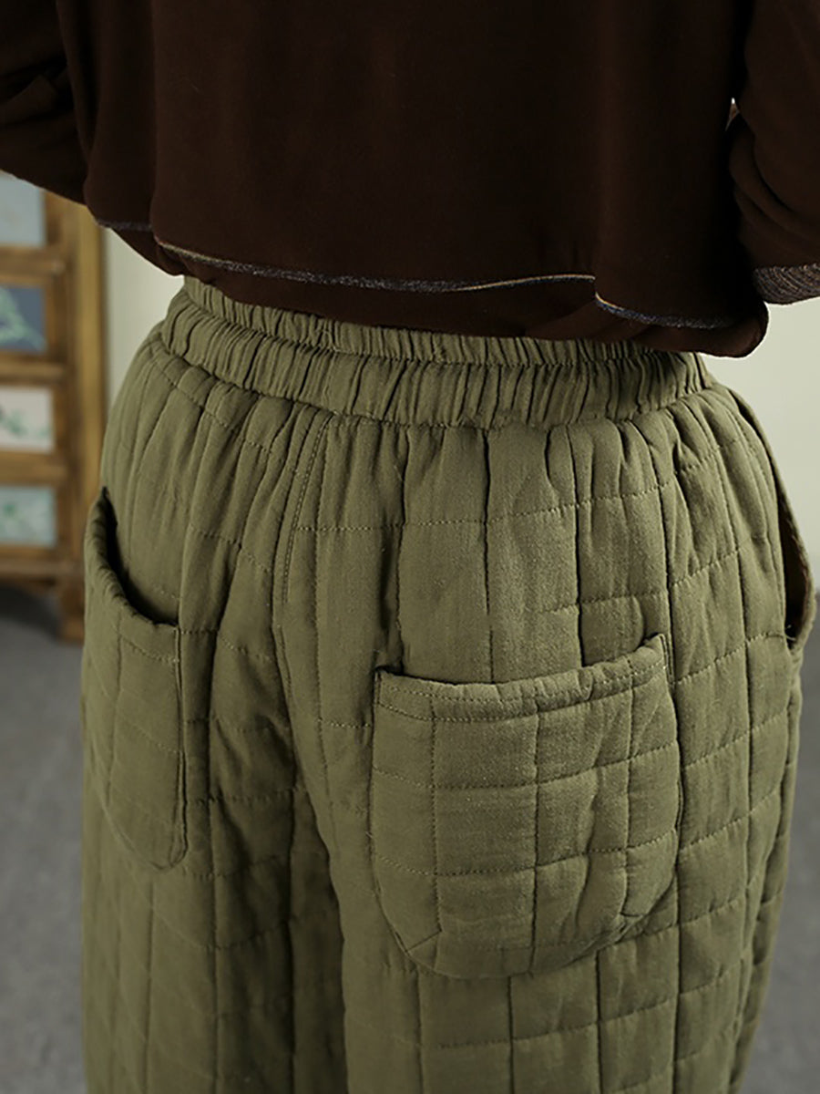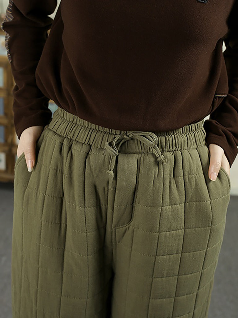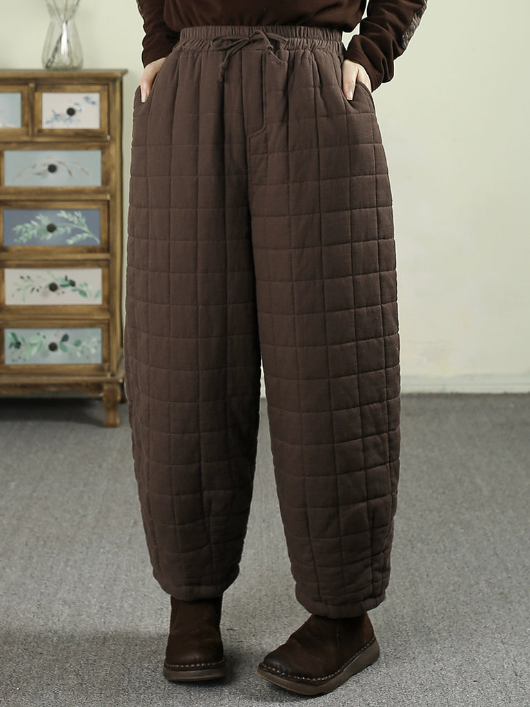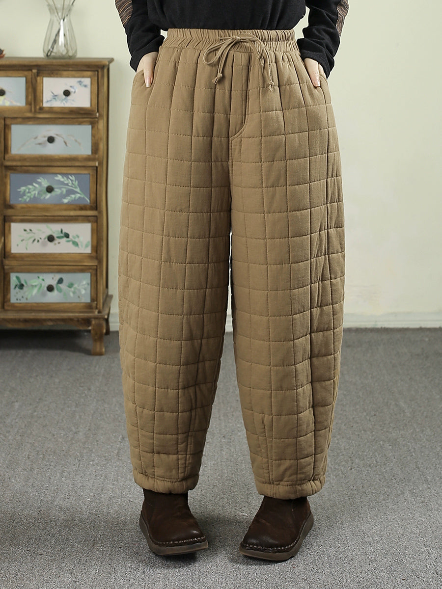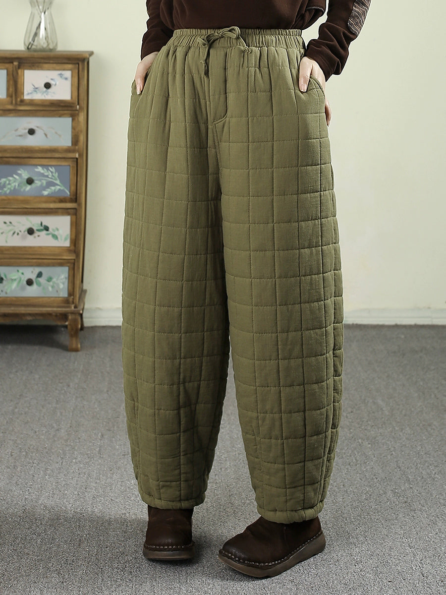Damen Winter Retro Einfarbig Gepolsterte Haremshose im Retro-Stil für Damen, wattiert