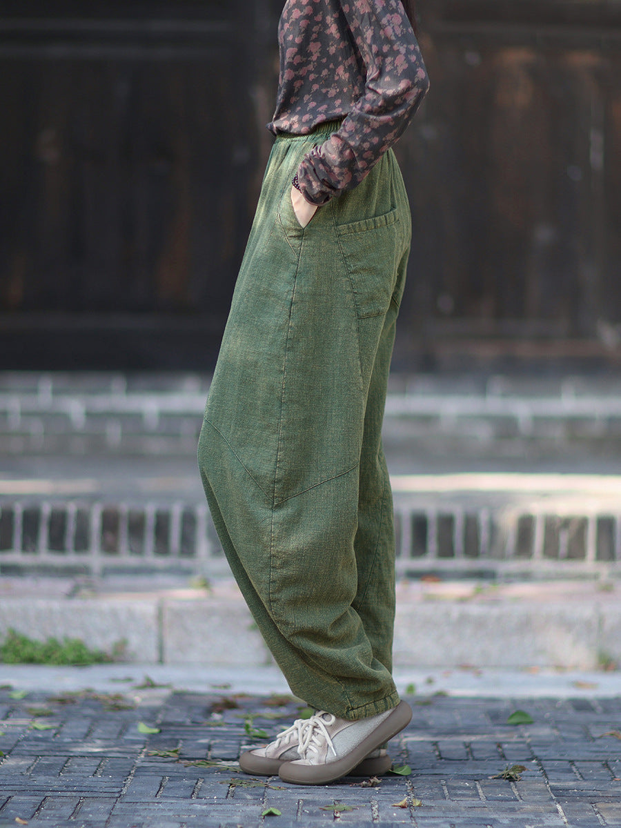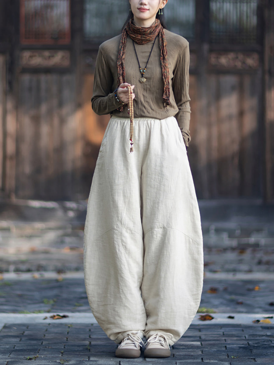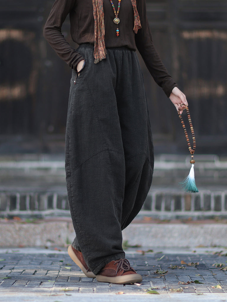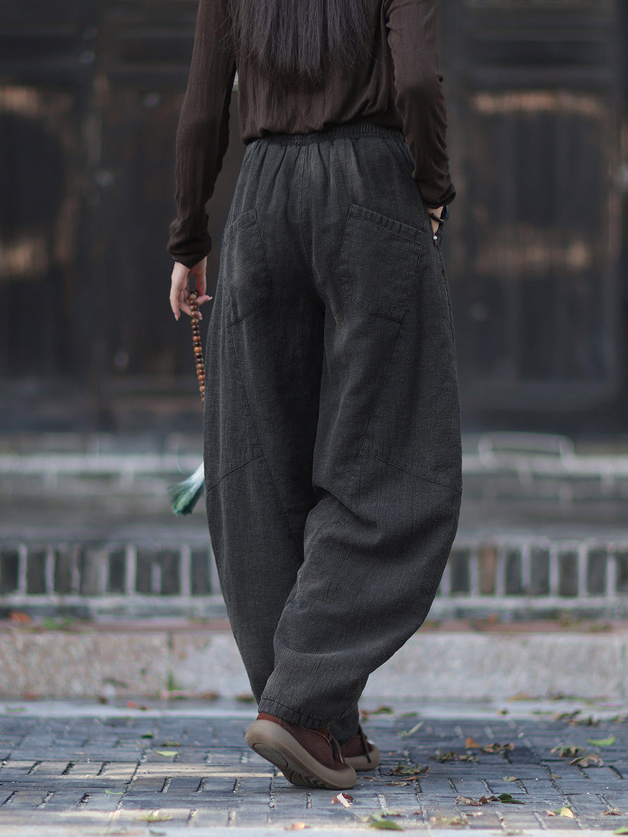Damen Winter Retro Einfarbig Gepolsterte Haremshose im Retro-Stil für Damen, wattiert