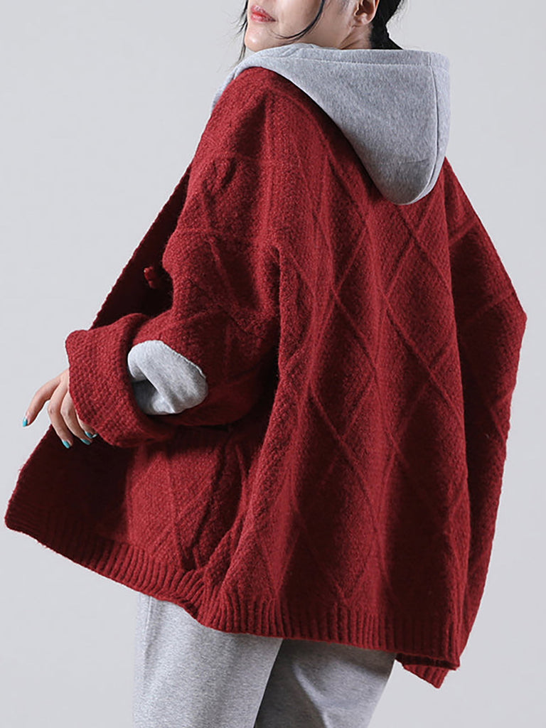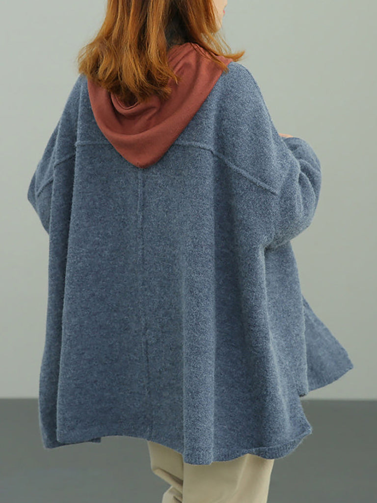 Lässiger knielanger Pullovermantel mit Kapuze für Damen