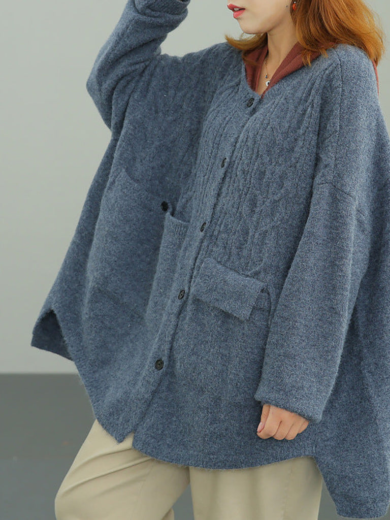 Pullovermantel mit Taschennähten, V-Ausschnitt und langen Ärmeln in Übergröße