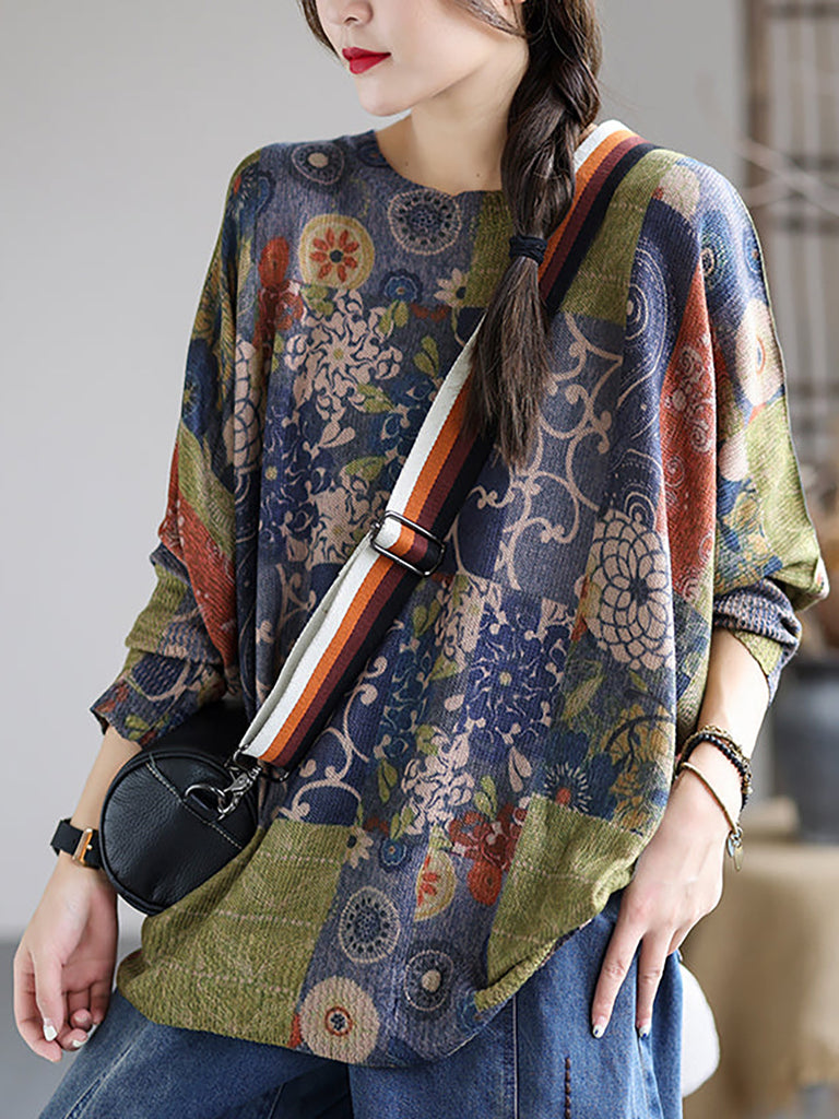 Plus Size Herbst Damen Vintage Patchwork Lose Sweatshirt