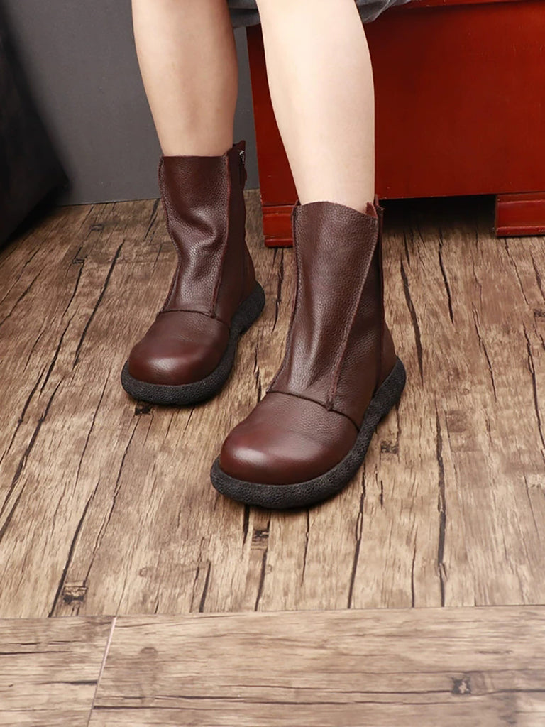 Damen Vintage Winter Leder Reißverschluss Low Heel Stiefel