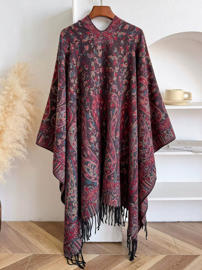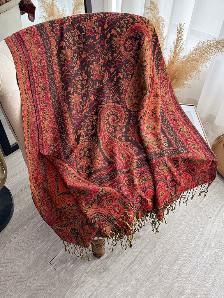 Damen Winter Schal mit ethnischem Blumenmuster und Quasten