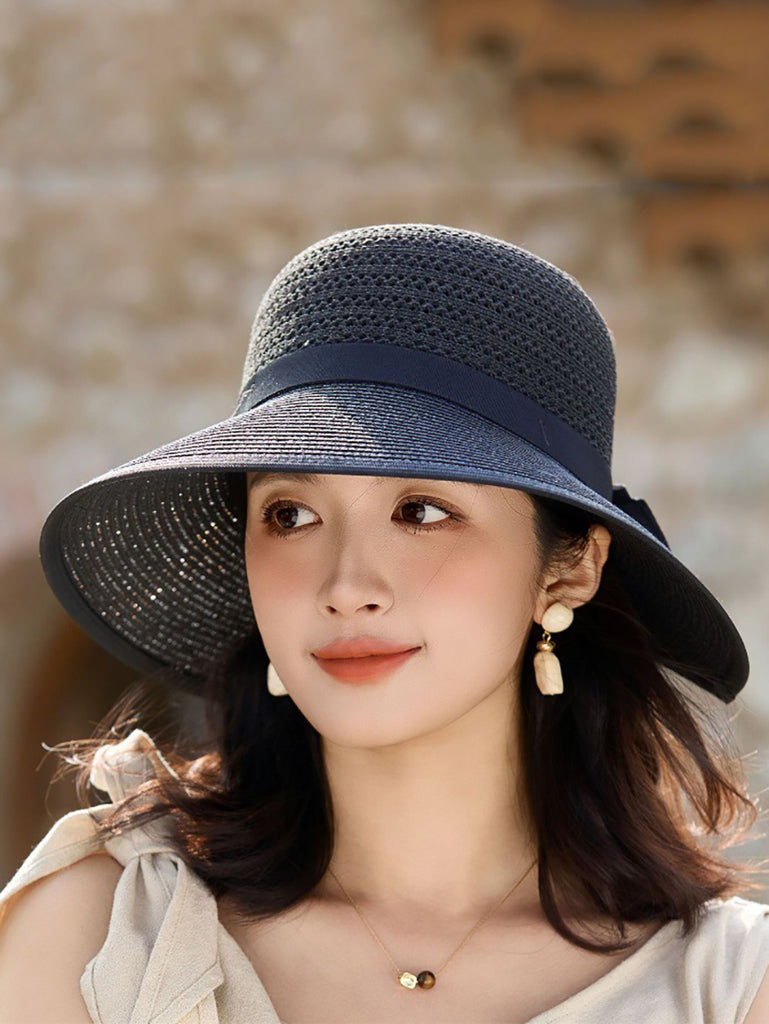 Damen Sommerhut mit Schleife und Strohgeflecht, sonnenfest