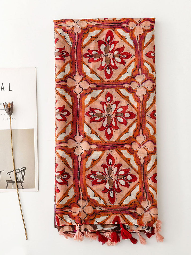 Ethnischer Blumendruck-Reiseschal mit Quasten