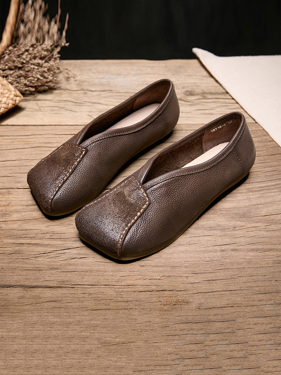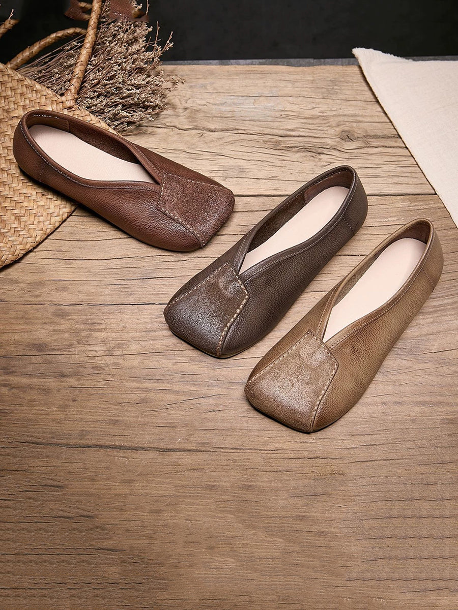 Damen-Frühlingsschuhe aus echtem Leder mit eckiger Spitze