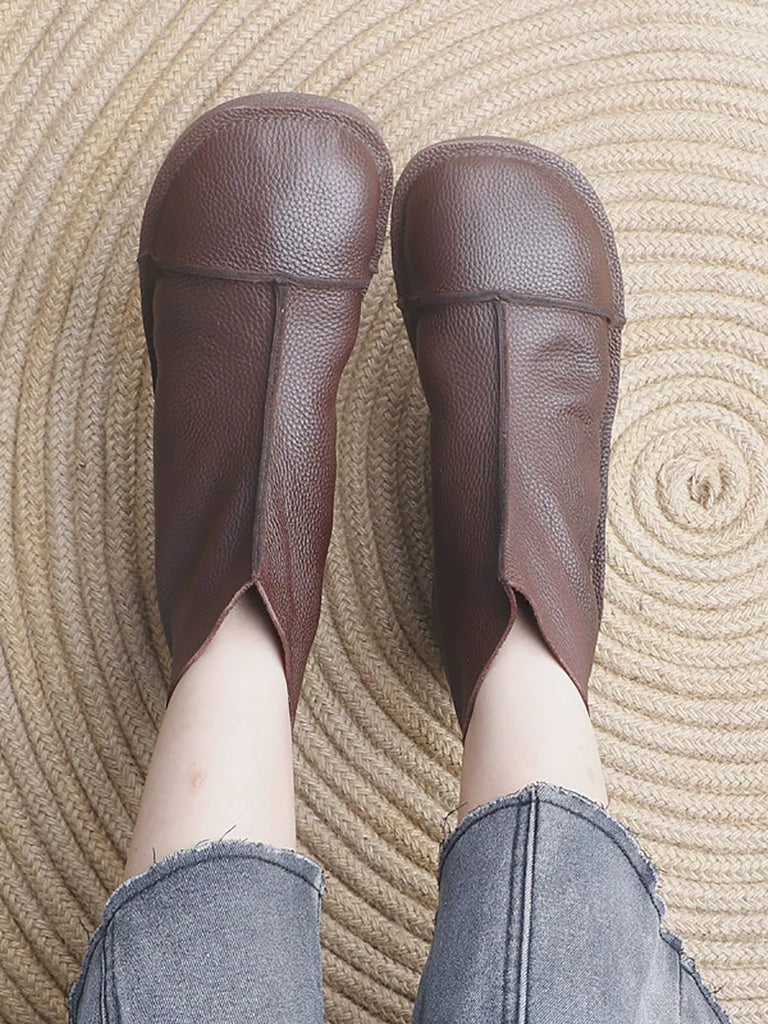Damen Herbst Casual Leder gespleißt Low Heel Stiefel