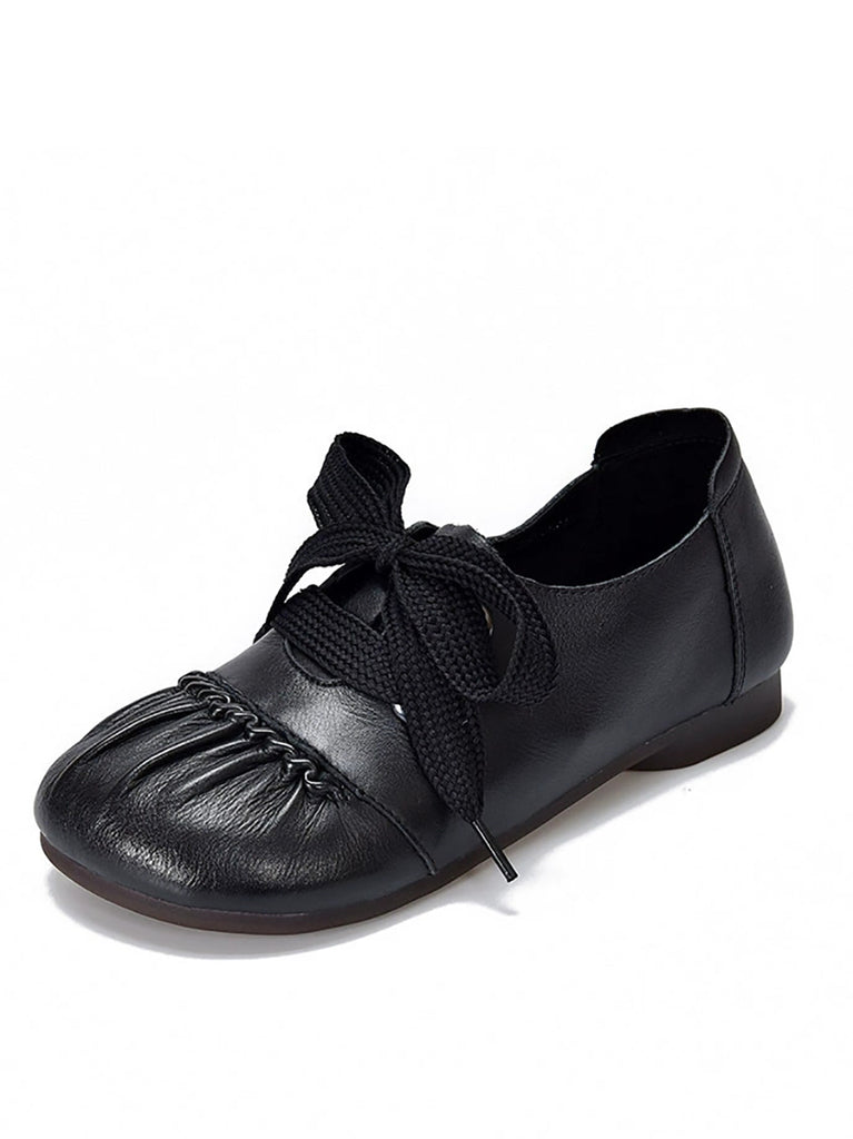 Damen Casual Lederschuhe mit gespleißtem Riemen und niedrigem Absatz