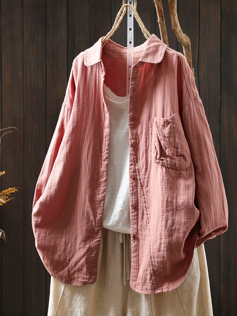 Damen Retro Herbst Reine Farbe 100% Baumwolle Hemd